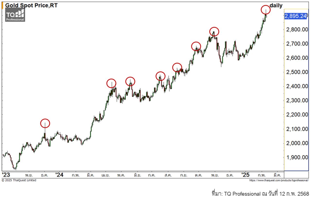 หากย้อนไปดูตั้งแต่อดีตกาล เมื่อสงครามเกิดขึ้น สิ่งที่ผู้คนทั่วโลกถือว่าเป็นสิ่งล้ำค่ามากยิ่งกว่าเงินตราคือทองคำมาโดยตลอด เนื่องจากเป็นสินทรัพย์ที่มีค่าในตัวเองและผู้คนทั่วโลกให้การยอมรับ ฉะนั้นการที่ Trump มีความประสงค์ที่จะยึดครอง Gaza Strip อาจส่งผลให้ความตึงเครียดในภูมิภาคตะวันออกกลางยังคงครุกรุ่น