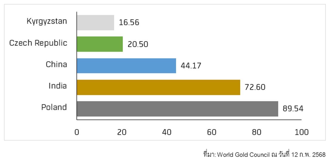 ภาพที่ 2 ปริมาณทองคำที่ธนาคารกลางต่างๆ เข้าซื้อในปี 2567 (ตัน)