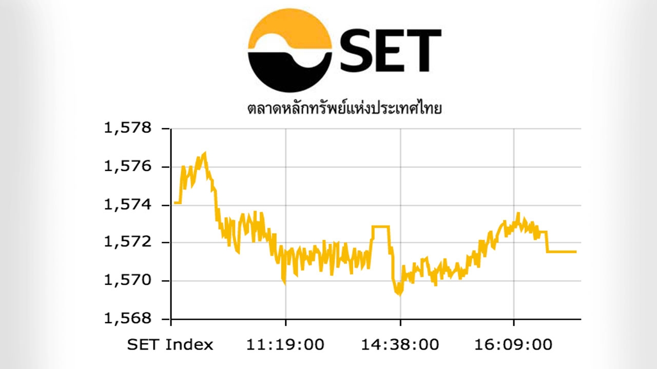 หุ้นไทยปิดตลาดบ่าย ปรับลดลง 2.57 จุด ดัชนีอยู่ที่ 1,571.52 จุด มูลค่าการซื้อขาย 38,185.56 ล้านบาท...