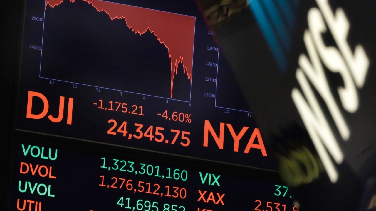 การซื้อขายในวันจันทร์ ดาวโจนส์ดิ่งลงไปสูงสุดถึง 1,597 จุด ก่อนที่นักลงทุนจะรีบเข้ามีซื้อหุ้นเพื่อจำกัดความเสียหายเอาไว้