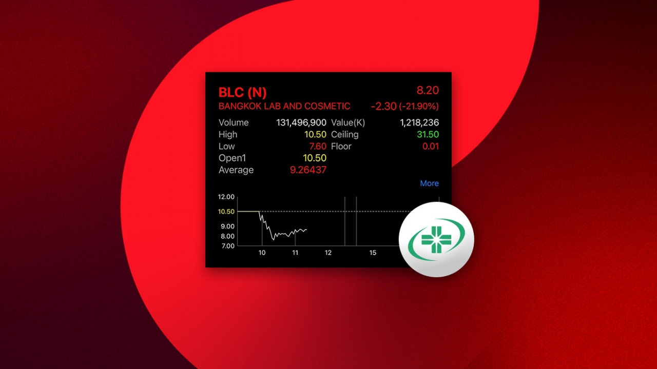 ความเคลื่อนไหวราคาหุ้นบริษัท บางกอกแล็ป แอนด์ คอสเมติค จำกัด (มหาชน) หรือ BLC ในช่วงเปิดการซื้อขายวันแรก เปิดตลาดที่ 10.50 บาท เท่ากับราคาจองซื้อ ก่อนปรับตัวลดลงต่ำสุด 27.61% มาอยู่ที่ 7.60 บาท