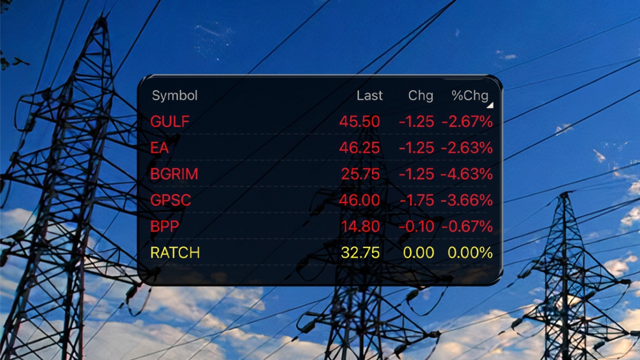 ทั้งนี้ปัจจัยดังกล่าวกดดันให้เกิดแรงขายอย่างหนักในช่วงเช้าวันนี้ (22 พ.ย. 66) ในหุ้นกลุ่มโรงไฟฟ้าขนาดใหญ่ ทั้ง บริษัท กัลฟ์ เอ็นเนอร์จี ดีเวลลอปเมนท์ จำกัด (มหาชน) หรือ GULF ราคาอยู่ที่ 45.50 บาท ลดลง 2.67%, บริษัท โกลบอล เพาเวอร์ ซินเนอร์ยี่ จำกัด (มหาชน) หรือ GPSC ราคาหุ้นอยู่ที่ 46.00 บาท ลดลง 3.66%, บริษัท บี.กริม เพาเวอร์ จำกัด (มหาชน) หรือ BGRIM ราคาอยู่ที่ 25.75 บาท ลดลง 4.63%, บริษัท พลังงานบริสุทธิ์ จำกัด (มหาชน) หรือ EA อยู่ที่ 46.25 บาท หรือลดลง 2.63%