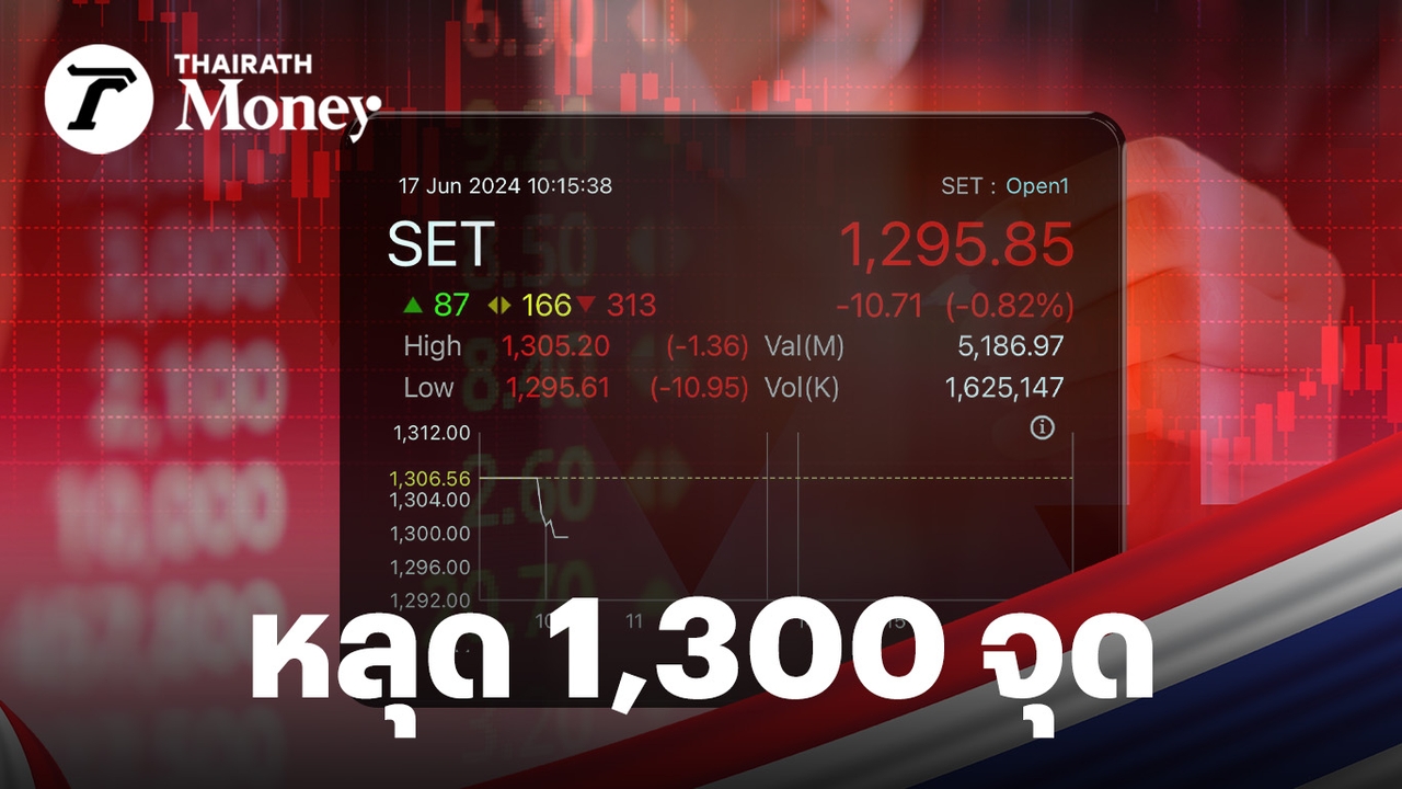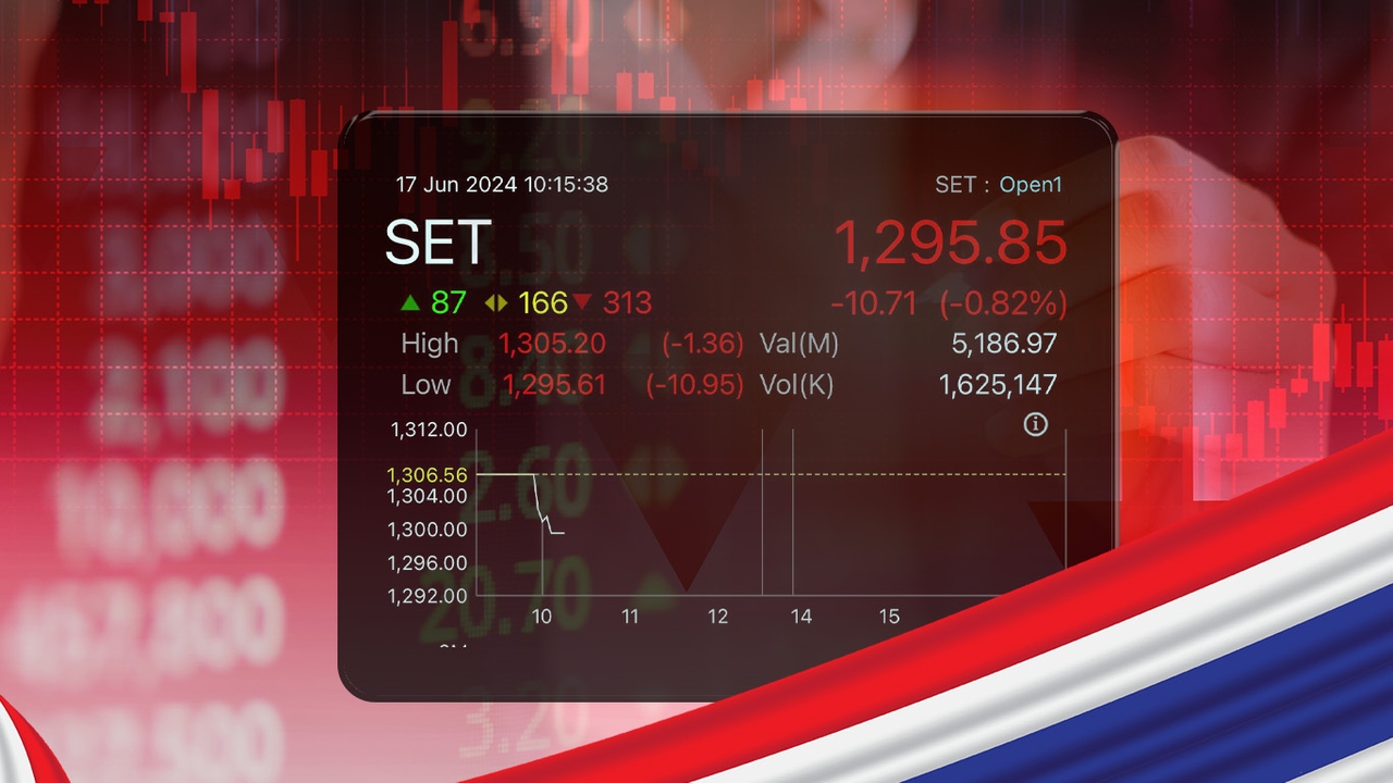 ประเด็นการเมืองในประเทศที่ยังมีความไม่แน่นอน กดดันให้ความเชื่อมั่นของนักลงทุนลดลง โดยดัชนีตลาดหุ้นไทย (SET index) เปิดตลาดวันนี้ 17 มิ.ย. 2567 ปรับตัวลดลงแรง หลุดระดับ 1,300 จุด (ณ เวลา 10.15 น.) ดัชนีอยู่ที่ 1,2195.85 จุด ลดลง 10.71 จุด หรือ 0.82% ท่ามกลางแรงขายจากนักลงทุน ด้านนักวิเคราะห์หลักทรัพย์ มองเป็น “โอกาส” เน้นเลือกลงทุนหุ้นรายอุตสาหกรรม หวังการฟื้นตัวของเศรษฐกิจและการบริโภคในประเทศช่วงครึ่งปีหลัง