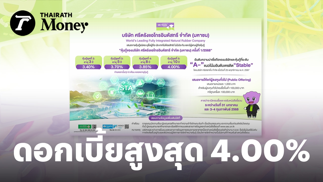 STA ผู้นำธุรกิจยางธรรมชาติครบวงจรรายใหญ่ที่สุดของโลกและผู้ผลิตถุงมือยางอันดับหนึ่งของประเทศไทย เตรียมเสนอขายหุ้นกู้ 4 ชุด ต่อประชาชนเป็นการทั่วไป