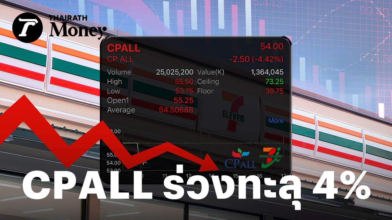 บริษัท ซีพี ออลล์ จำกัด (มหาชน) หรือหุ้น CPALL เช้านี้ปรับตัวลดลงแรง ณ เวลา 10.16 น. ราคาหุ้นอยู่ที่ 54.00 บาท ลดลง 2.5 บาท หรือ -4.42% จากราคาปิดวันก่อน