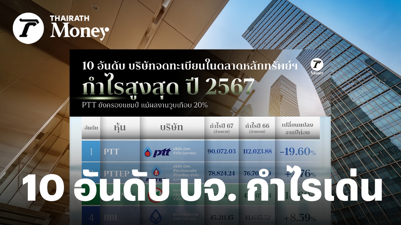 “Thairath Money” รวบรวม 10 อันดับบริษัทจดเบียนที่ทำกำไรสุทธิปี 2567 ได้มากที่สุด โดยต่างทำกำไรสุทธิได้มากกว่า 20,000 ล้านบาท ดังนี้