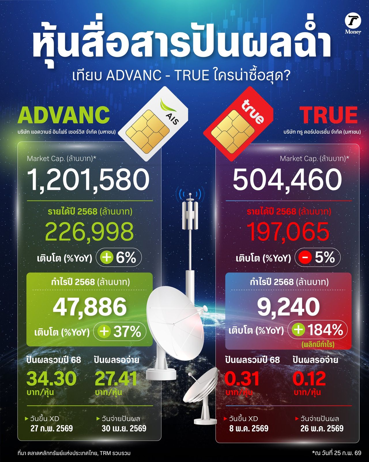 ปิดงบปี 2568 ไปเป็นที่เรียบร้อยสำหรับ 2 ยักษ์ใหญ่แห่งวงการโทรคมนาคมไทยอย่าง ADVANC และ TRUE ซึ่งต้องบอกเลยว่าปีนี้เป็น "ปีทอง" ของหุ้นกลุ่มสื่อสารอย่างแท้จริง