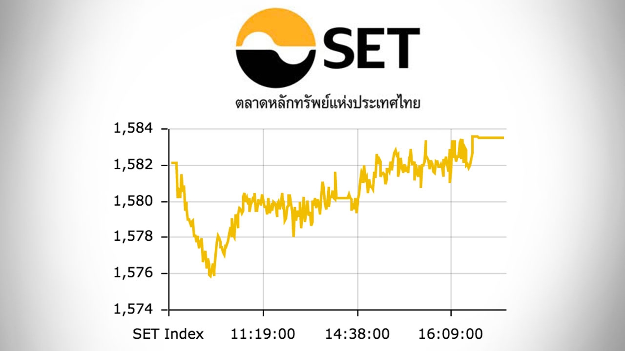 หุ้นไทยปิดตลาด ปรับขึ้น 1.41 จุด ดัชนีอยู่ที่ 1,583.53 จุด มูลค่าการซื้อขาย 38,162.21 ล้านบาท