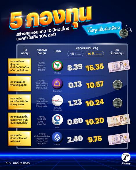 วันนี้ไทยรัฐมันนี่ จะชวนทุกท่านมาร่วมกันหาคำตอบ กองทุนรวมไหน ที่สามารถสร้างผลตอบแทนเฉลี่ยมากที่สุด 10 ปีติดต่อกัน แถมบางกองทุนรวมใช้เงินเริ่มต้นลงทุน 1 บาท