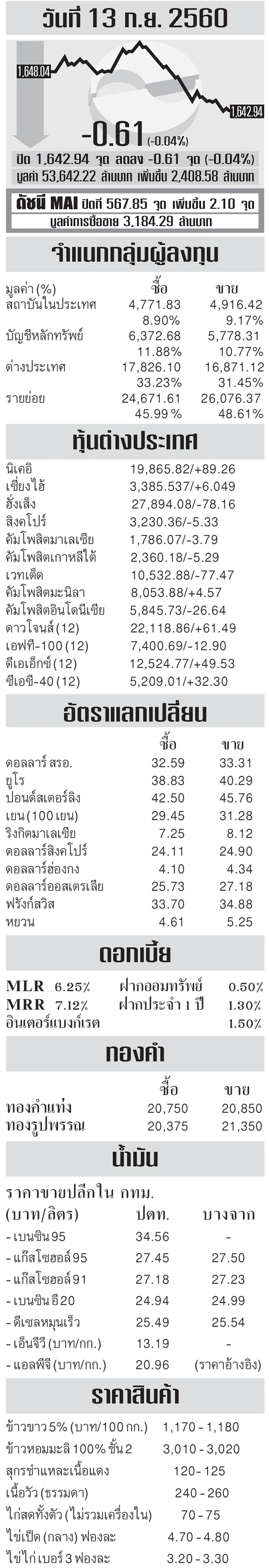 ดัชนีเศรษฐกิจ 14/09/60