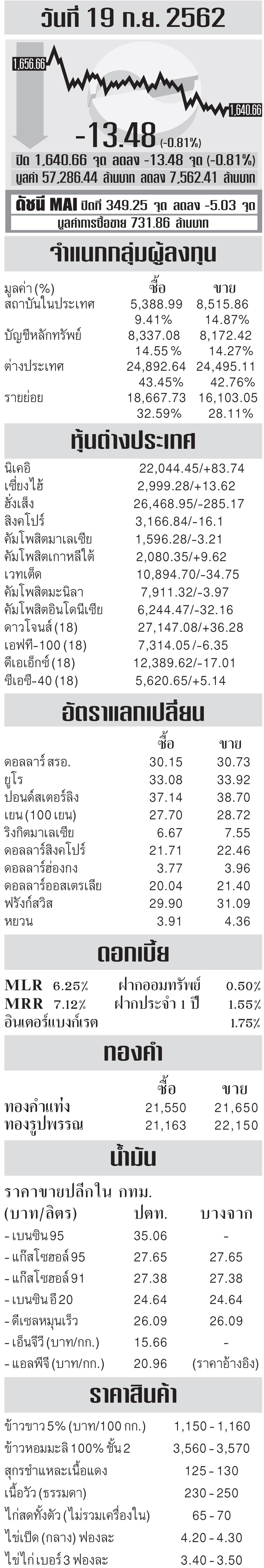 ดัชนีเศรษฐกิจ 20/09/62