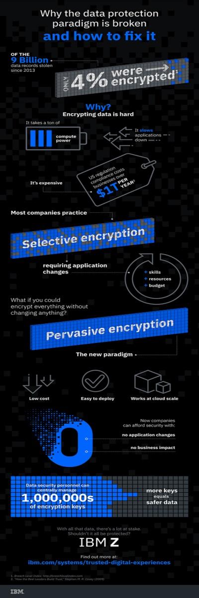 บริษัทมไอบีเอ็ม ประกาศเปิดตัว ไอบีเอ็ม z14 เมนเฟรม สำหรับสำหรับสถาบันการเงิน ที่มีจุดเด่นอยู่ที่ความสามารถในการเข้ารหัสข้อมูล โดย IBM Z ได้รับการออกแบบมาเพื่อจัดการกับปัญหาข้อมูลรั่วไหลที่กำลังลุกลามไปทั่วโลก อันเป็นหนึ่งในเหตุอาชญากรรมไซเบอร์ที่โดยรวมคาดว่าจะสร้างความเสียหายมูลค่าถึง 2 ล้านล้านเหรียญสหรัฐ และส่งผลกระทบต่อเศรษฐกิจทั่วโลกภายในปี 2562 ทั้งนี้ จากข้อมูลจำนวนกว่า 9,000 ล้านรายการที่ถูกขโมยหรือสูญหายนับตั้งแต่ปี 2557 มีเพียงสี่เปอร์เซ็นต์เท่านั้นที่ได้รับการเข้ารหัส ทำให้ข้อมูลส่วนใหญ่เหล่านี้กลายเป็นช่องโหว่ที่เสี่ยงต่อการถูกคุกคามจากวงจรอาชญากรรมไซเบอร์และพนักงานที่นำสิทธิ์การเข้าถึงข้อมูลที่ละเอียดอ่อนไปใช้ในทางที่ผิด