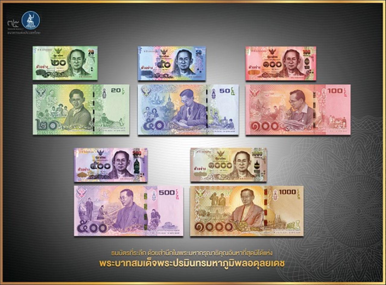 ทั้งนี้ธนบัตรชุดใหม่นี้จะออกใช้หมุนเวียนพร้อมกันทุกชนิดราคา ตั้งแต่วันที่ 20 ก.ย. 2560 เป็นต้นไป โดยประชาชนสามารถแลกธนบัตรได้ตามช่องทางปกติผ่านทางธนาคารพาณิชย์ ธนาคารออมสิน ธนาคารเพื่อการเกษตรและสหกรณ์การเกษตร (ธ.ก.ส.) ธนาคารอาคารสงเคราะห์ (ธอส.) และธนาคารอิสลามแห่งประเทศไทย (ธอท.) ได้อย่างต่อเนื่องเช่นเดียวกับธนบัตรหมุนเวียนปกติ โดยธนบัตรชุดใหม่นี้จะมีลักษณะต่อต้านการปลอมแปลงเช่นเดียวกับธนบัตรแบบ 16 และได้เพิ่มเติมลักษณะพิเศษ คือ การเรืองแสงบริเวณเบื้องหลังพระบรมฉายาสาทิสลักษณ์เมื่อส่องภายใต้รังสีเหนือม่วง