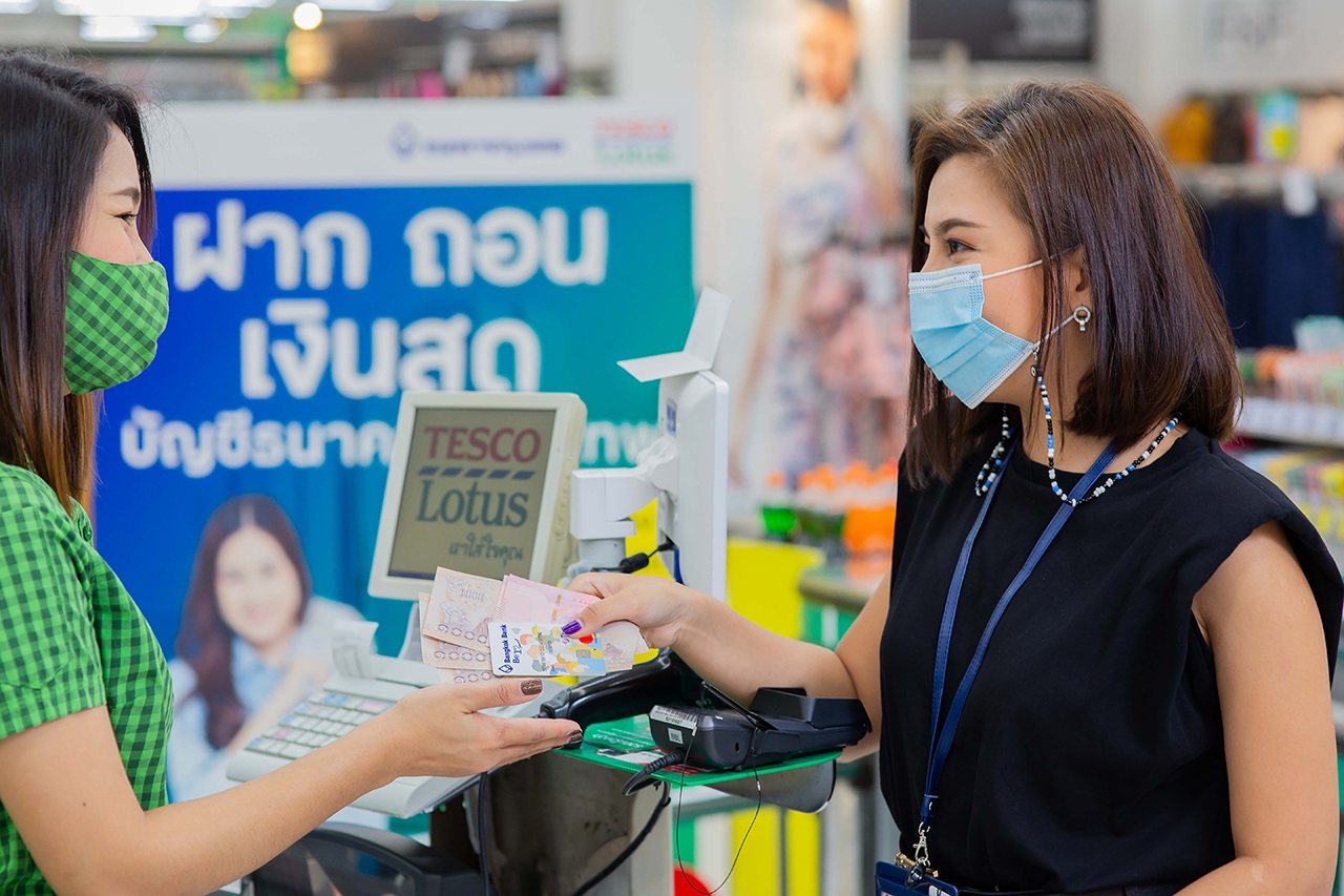 การร่วมมือระหว่างเทสโก้ โลตัส และธนาคารกรุงเทพ จะทำให้ลูกค้าธนาคารกรุงเทพกว่า 17 ล้านบัญชี สามารถฝาก/ถอนเงินสด ผ่านเคาน์เตอร์ชำระเงินของเทสโก้ โลตัส ทั้งสาขาขนาดใหญ่และขนาดเล็ก เพิ่มเติมจากการทำธุรกรรมที่สาขาและเครื่องฝาก/ถอนเงินสดอัตโนมัติ ซึ่งจะช่วยเพิ่มความสะดวกให้ลูกค้าได้มากขึ้น สามารถเข้าถึงธุรกรรมทางการเงินได้ตลอดเวลาที่ต้องการผ่านทั้งช่องทางออนไลน์ และออฟไลน์ ด้วยจำนวนสาขาของเทสโก้ โลตัสที่ครอบคลุมทุกภูมิภาค รวมถึงมีระยะเวลาในการทำธุรกรรมได้ยาวนานขึ้น ตามเวลาการเปิดให้บริการที่ยาวนานกว่าการให้บริการของสาขาธนาคารตามปกติ โดยปัจจุบันสามารถใช้บริการฝาก/ถอนเงินสดในเทสโก้ โลตัสได้แล้วกว่า 90% หรือมากกว่า 1,800 สาขา และภายในสิ้นปีนี้จะขยายบริการให้ครบทั้งกว่า 2,000 สาขาทั่วประเทศ