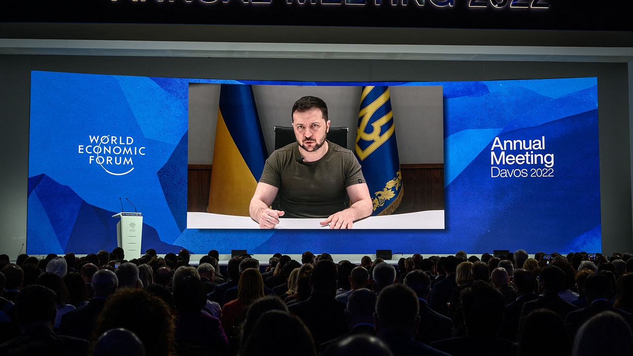 สำหรับประเด็นความขัดแย้งระหว่างรัสเซีย–ยูเครน เป็นหนึ่งในประเด็นร้อนแรงในการประชุมปีนี้ โดยประธานาธิบดีและรัฐมนตรีต่างประเทศยูเครนได้เข้าร่วมการประชุมผ่านระบบออนไลน์ และได้ เรียกร้องให้นานาประเทศร่วมกันเพิ่มแรงกดดันต่อรัสเซียผ่านการคว่ำบาตรในด้านการเงินและพลังงาน ให้มากขึ้น เพื่อยับยั้งประเทศอื่นๆจากการใช้กำลังทางทหารเพื่อให้บรรลุเป้าหมายของตนเอง ทั้งนี้ มีแนวโน้มว่ามาตรการคว่ำบาตรต่อรัสเซียจะมีต่อไปยาวนาน ซึ่งส่งผลกระทบต่อการค้าการลงทุนของโลกทั้งในระยะสั้นและระยะยาว