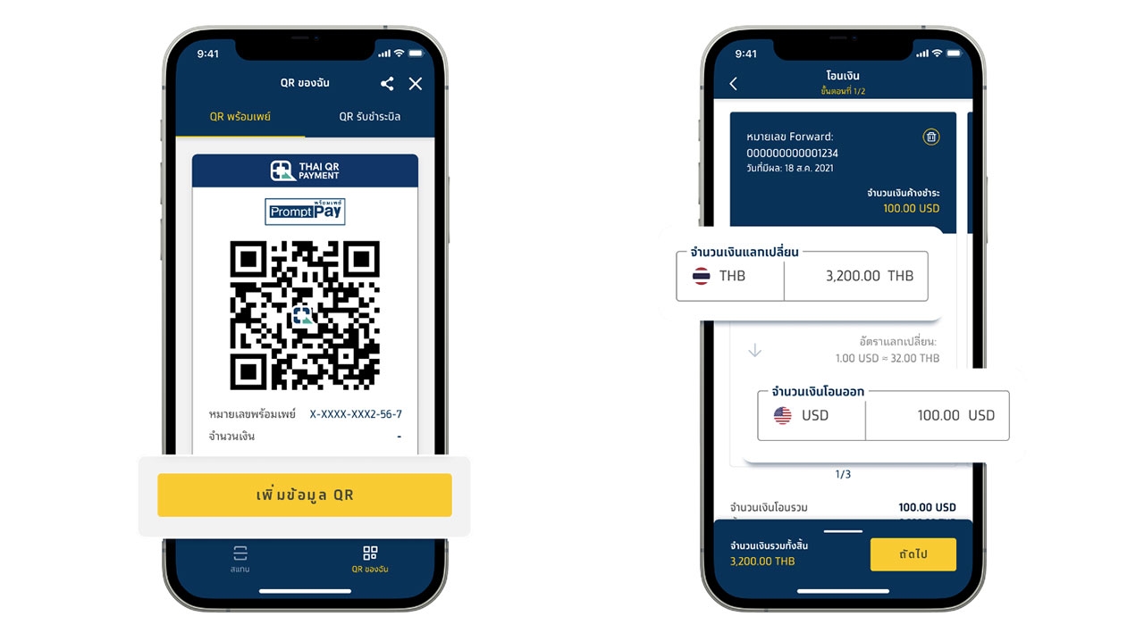 “ครบ” ทำได้ทุกธุรกรรมไม่ต้องเข้าออกเปลี่ยนแอปฯ ให้วุ่นวาย มีบริการ My QR รับหรือจ่ายก็สะดวก รวมถึงสร้าง QR รับเงิน และสแกน QR จ่ายเงิน สั่งซื้อสมุดเช็ค อายัดเช็ค และสอบถามสถานะเช็ค อีกทั้งมีบริการโอนเงินต่างประเทศ ครอบคลุม 16 สกุลเงินสำคัญทั่วโลก ได้ตลอด 24 ชั่วโมง ก้าวผ่านข้อจำกัดเรื่องเวลาและสถานที่