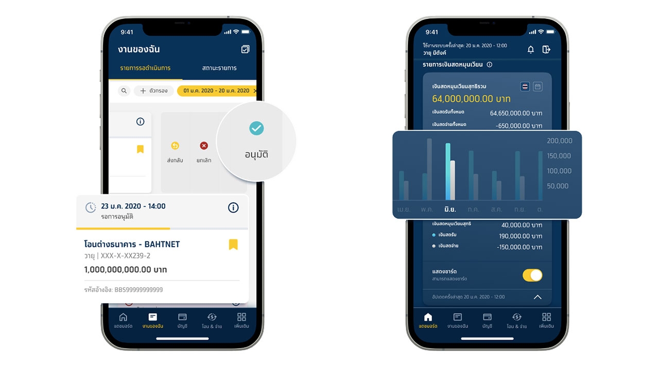 “ง่าย” เมื่อต้นทุนคือโจทย์หลักที่ทุกคนต้องบริหารให้ดีที่สุด แอปฯ นี้มีระบบตัวช่วยอัจฉริยะที่เลือกบริการโอนเงินที่เหมาะกับวงเงินและคุ้มค่ากับต้นทุนธุรกิจแบบอัตโนมัติ เลือกโอนเงินหลายรายการพร้อมกันในครั้งเดียว เรียกดูสรุปรายการรับ-จ่ายในรูปแบบ Dashboard ขอ Statement และอัปเดตรายการสำคัญที่ต้องทำ เพื่อไม่ให้พลาดแม้แต่ธุรกรรมเดียว