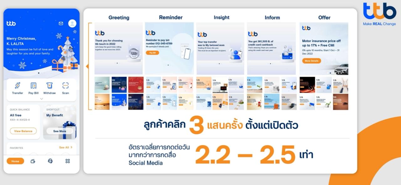 ปัจจุบันนี้ แอปมีความเสถียรและสามารถให้บริการลูกค้าได้อย่างมีประสิทธิภาพ ที่สำคัญด้วยศักยภาพของ ttb touch เวอร์ชันใหม่ ทำให้ธนาคารสามารถนำเสนอผลิตภัณฑ์และบริการ รวมถึงโปรโมชันต่างๆ ให้กับลูกค้าแบบ 1 ต่อ 1 หรือ Segment-of-One ยกระดับการให้บริการลูกค้าได้