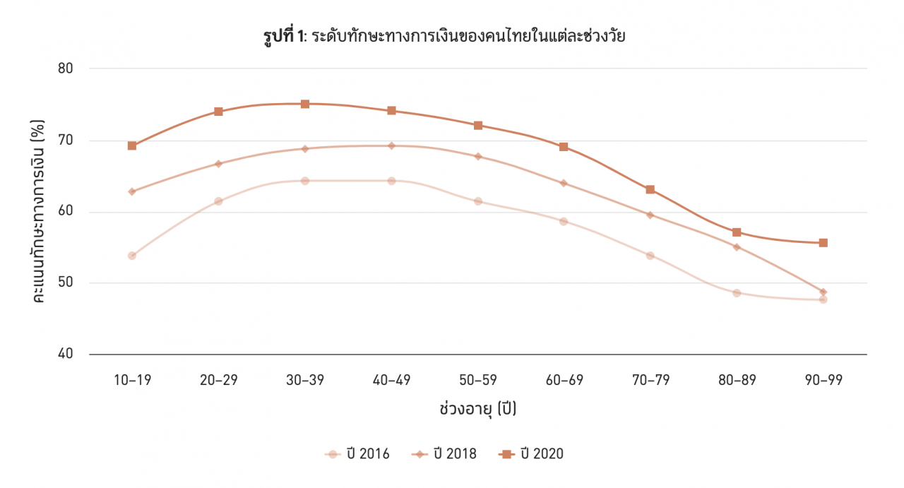 ซึ่งหมายถึง คนมักเพิ่มพูนทักษะทางการเงินตามอายุที่มากขึ้นและจะเริ่มมีทักษะที่แย่ลงเมื่อมีเข้าสู่วัยสูงอายุ โดยหากแบ่งกลุ่มคนตามช่วงอายุ พบ คนวัย 30-39 ปี มีทักษะสูงสุด รองลงมา เป็นกลุ่ม 20-29 ปี และ 40-49 ปี ใกล้เคียงกัน
