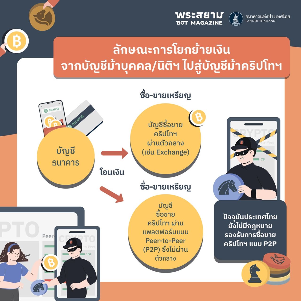 2. บัญชีซื้อขายผ่านแพลตฟอร์มต่างประเทศแบบ Peer-to-Peer (P2P) ซึ่งเป็นการซื้อขายระหว่างผู้ซื้อและผู้ขายโดยตรง ทั้งนี้ ปัจจุบันประเทศไทยยังไม่มีกฎหมายรองรับ รวมถึงไม่มีหน่วยงานกำกับดูแล จึงมีความเสี่ยงสูงที่จะถูกใช้เป็นเครื่องมือของมิจฉาชีพ