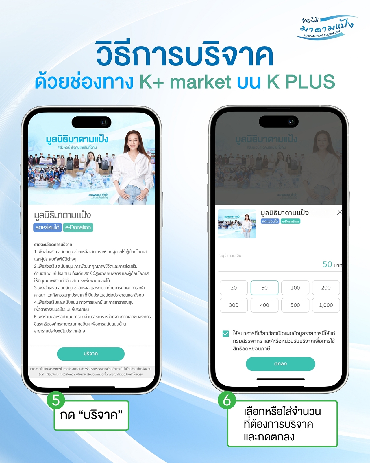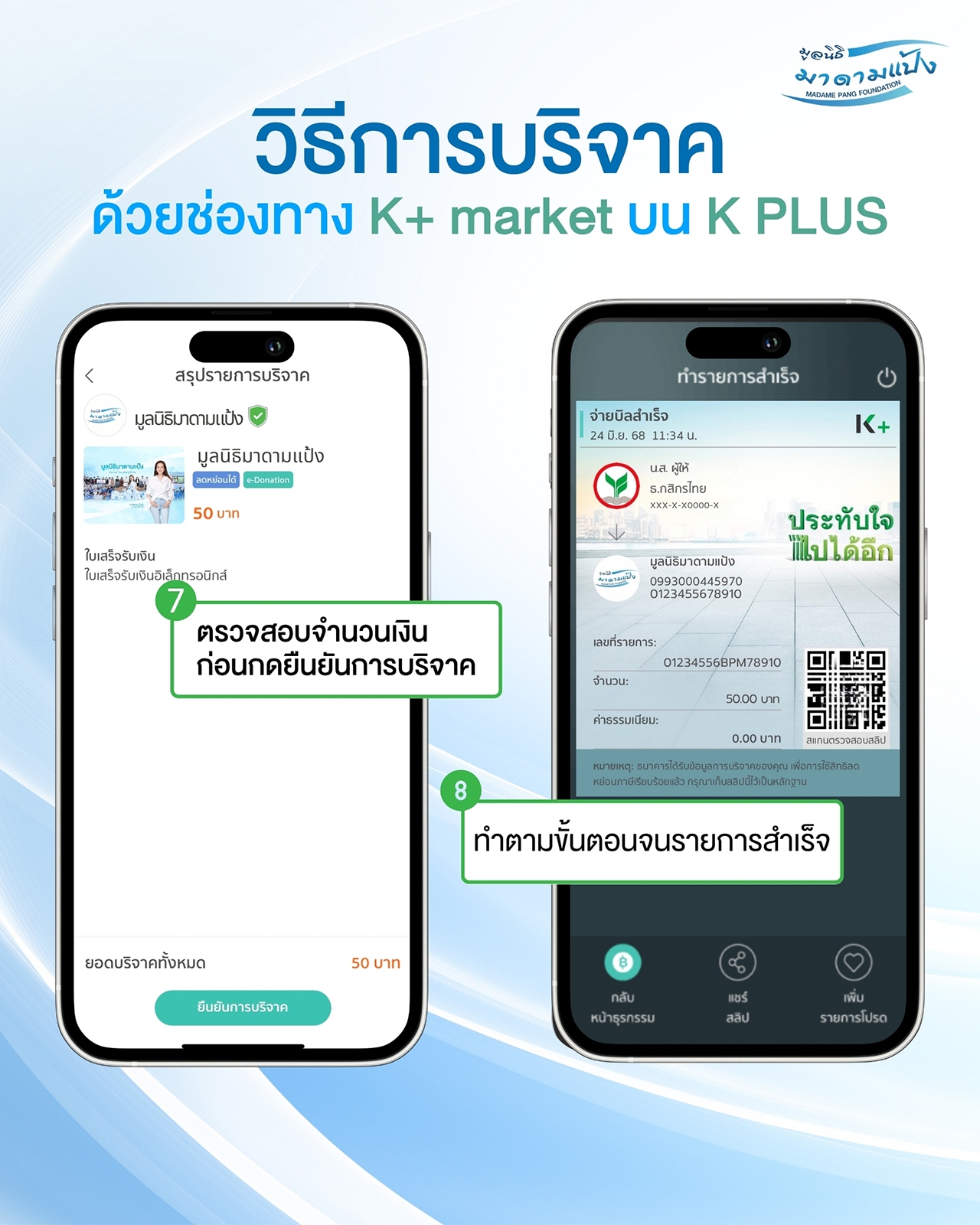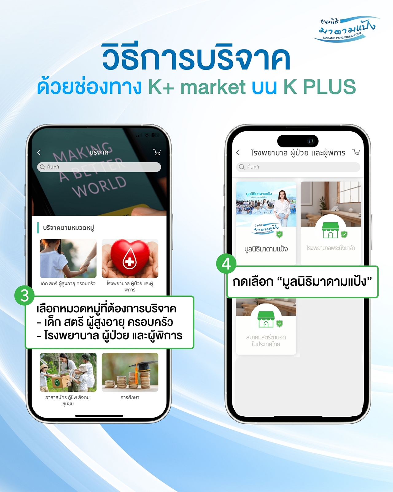 วิธีการบริจาคด้วยช่องทาง K+ market บน K PLUS