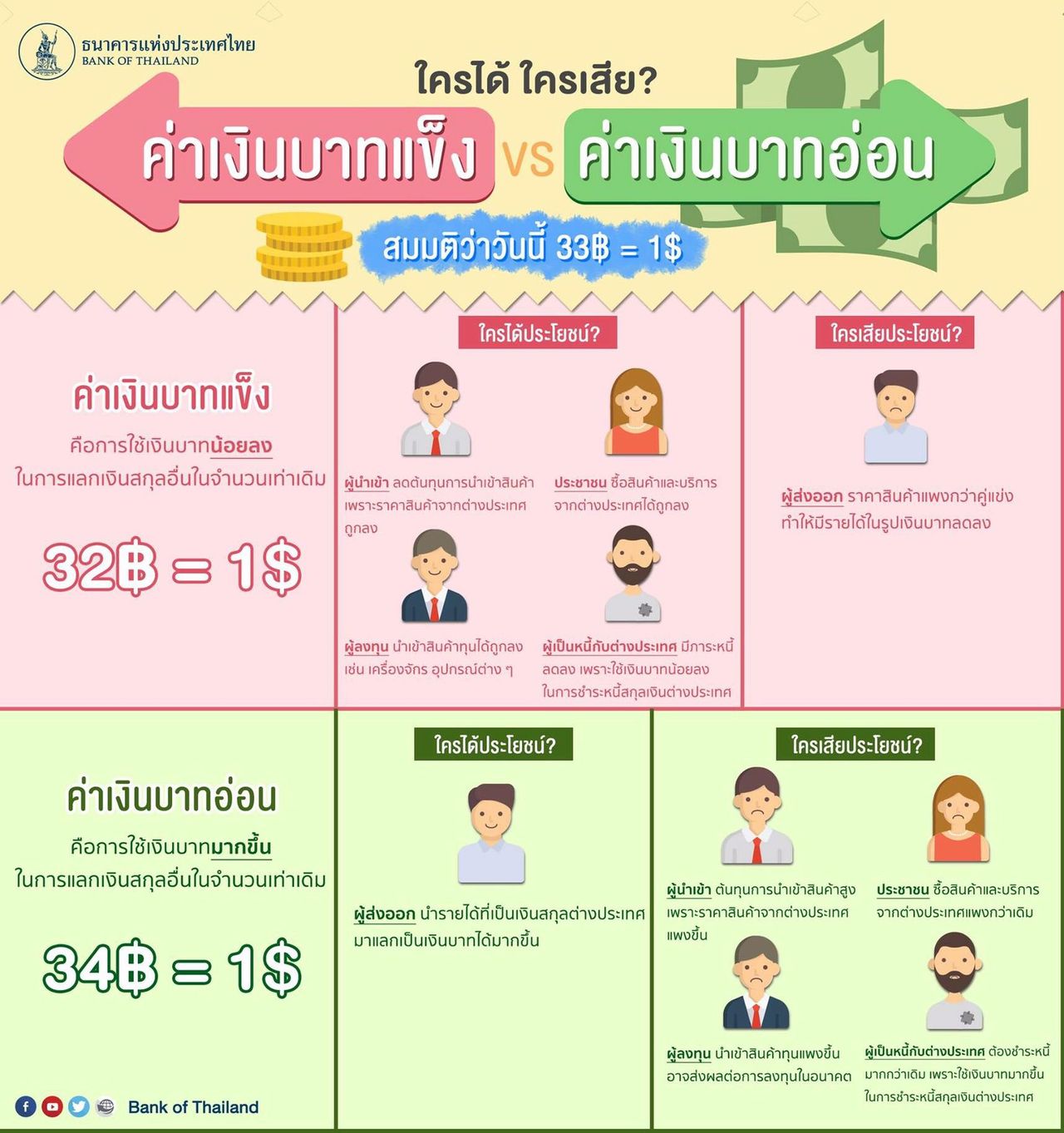 คนที่เสียประโยชน์เมื่อเงินบาทแข็งค่าขึ้น คือ