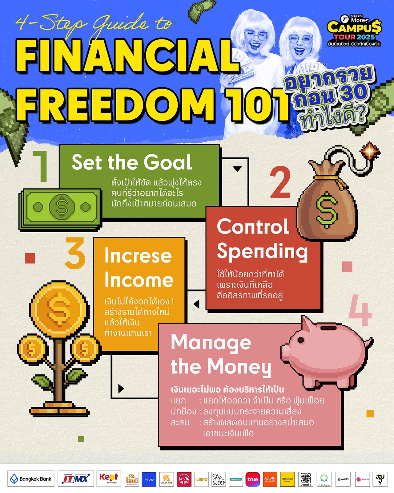 การมุ่งสู่อิสรภาพทางการเงินก่อนอายุ 30 อาจไม่ใช่เรื่องง่าย แต่ก็สามารถเปลี่ยนเส้นทางชีวิตที่จะต่อยอดยาวไปจนถึงวัยเกษียณได้ ดังนั้นการเข้าใจการทำงานของเงินตั้งแต่เนิ่น ๆ จะช่วยตัดขาดวงจรการใช้เงินแบบ “เดือนชนเดือน” และสานต่อความมั่งคั่งในระยะยาว เช่นเดียวกับสิ่งที่หลายคนอาจต้องใช้เวลาหลายสิบปีจึงจะได้มา