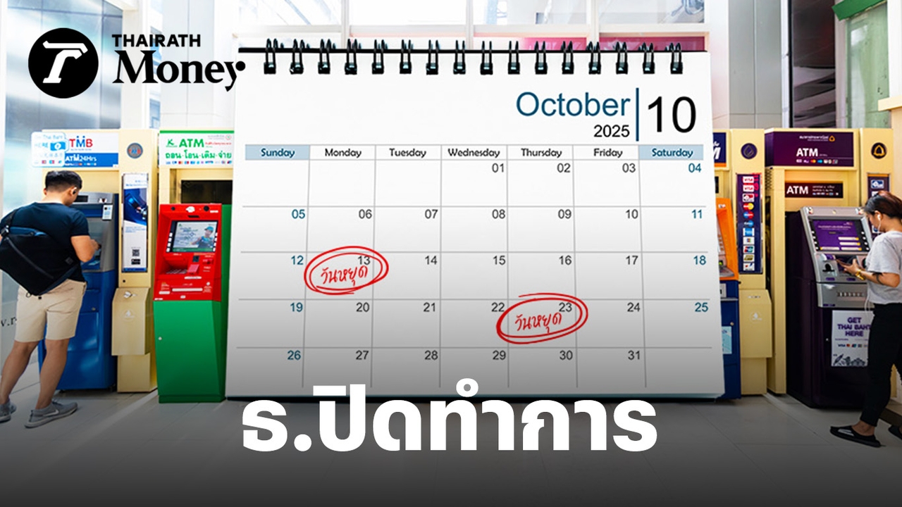 - สาขาทั่วไป ปิดทำการในวันที่ 13 และ 23 ตุลาคม ปี 68