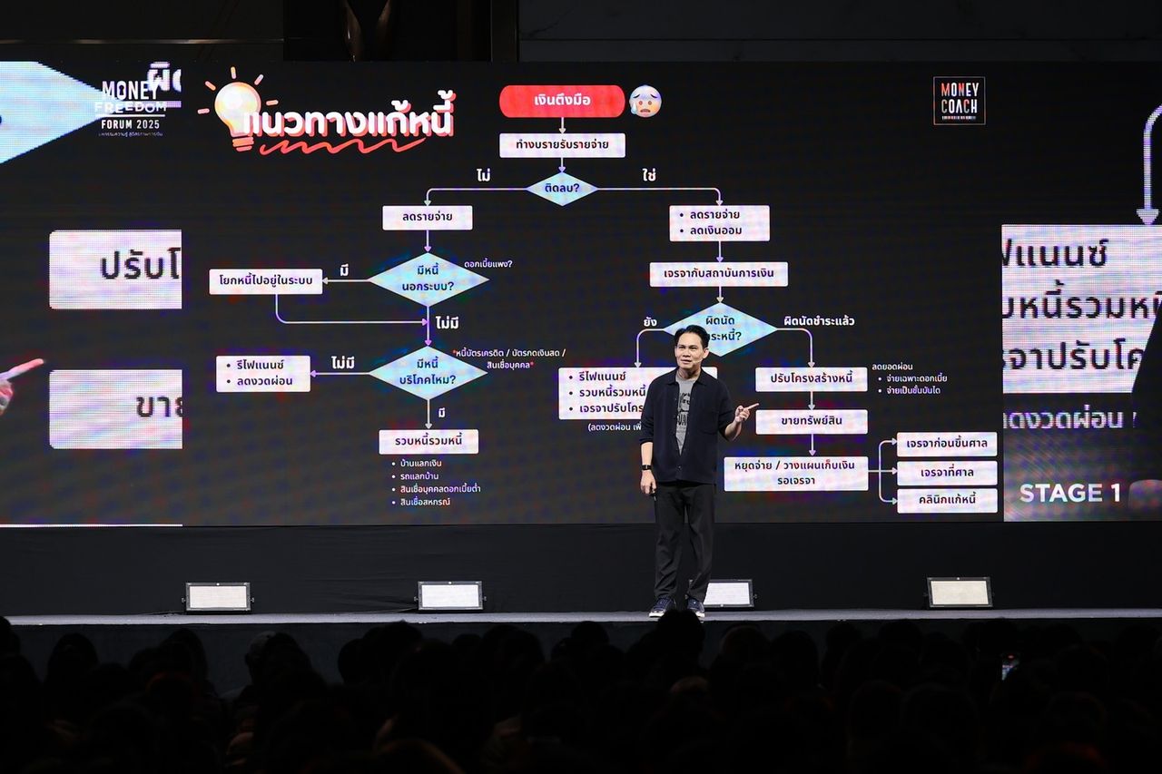 Money Freedom Forum 2025 มหกรรมความรู้ สู่อิสรภาพทางการเงิน จัดขึ้นเมื่อวันที่ 11 ตุลาคม 2568 โค้ชหนุ่ม จักรพงษ์ เมษพันธุ์ (The Money Coach) ขึ้นมาเป็นผู้บรรยายคนแรกของงาน ภายใต้หัวข้อ Unlock Your Financial Destiny: From Survival to Prosperity