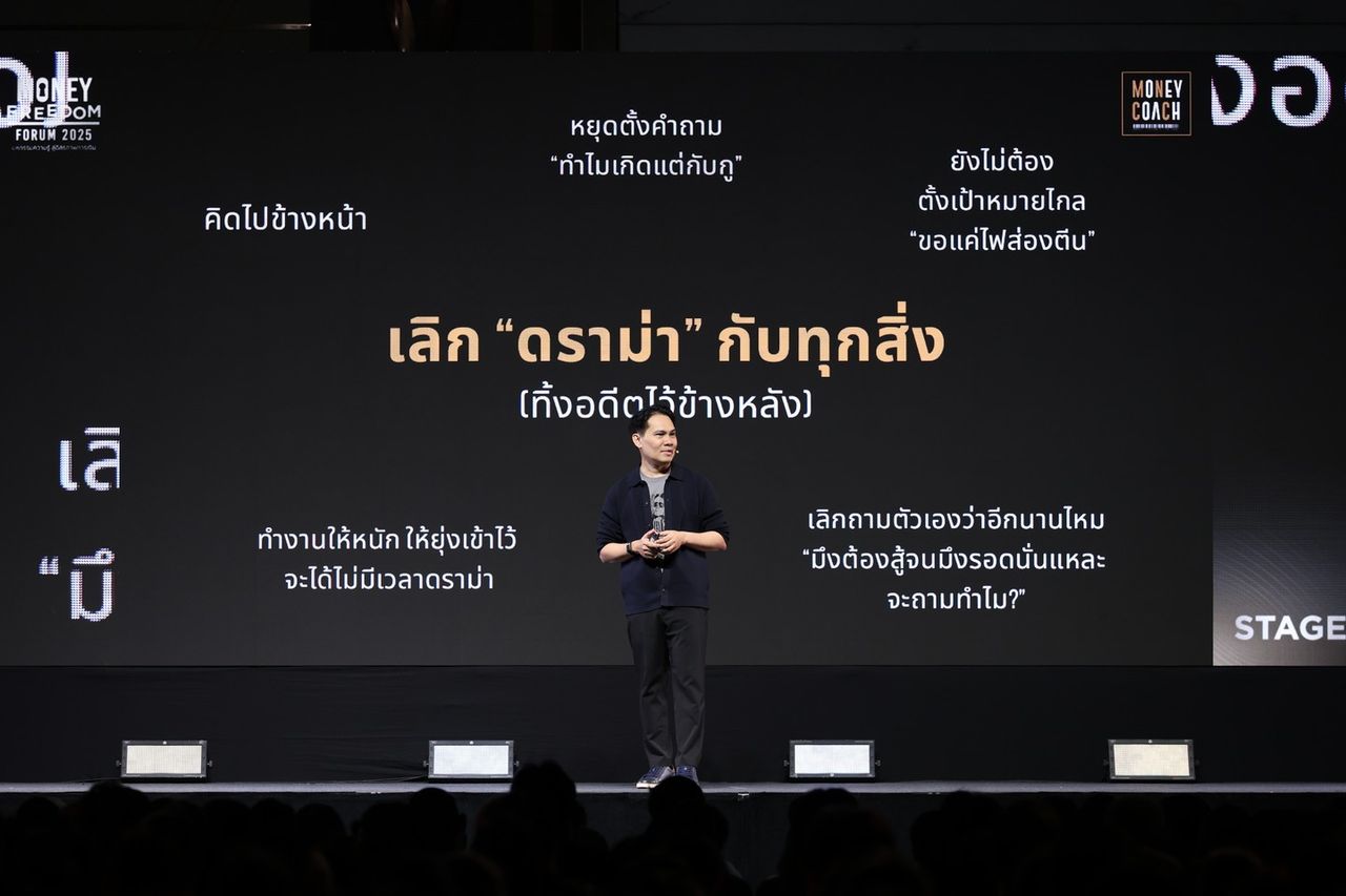 ตั้งแต่เริ่มการบรรยาย โค้ชหนุ่มได้นิยาม อิสรภาพทางการเงิน ว่าไม่ใช่ชีวิตที่อยากซื้ออะไรก็ซื้อ แต่มันคือจุดหนึ่งของชีวิตที่ “ความกังวลเรื่องเงินจะเบาลงอย่างมาก”