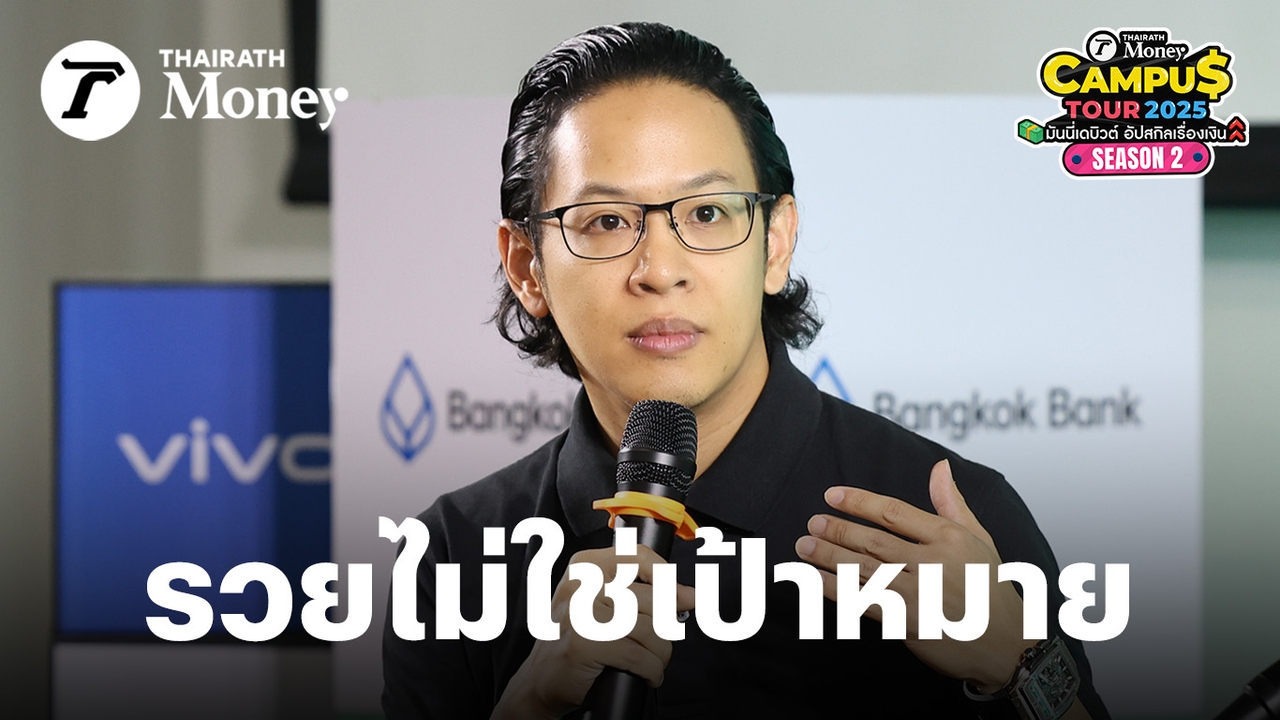 บนเวที Thairath Money Campus Tour 2025 SEASON 2 ที่มหาวิทยาลัยธรรมศาสตร์ โอม Cocktail ได้สะท้อนให้เห็นว่าเป้าหมายที่แท้จริงของการบริหารเงิน ไม่ใช่การไล่ล่าความร่ำรวยสูงสุด แต่คือการสร้างปราการที่แข็งแกร่งพอจะ "ยืนให้ได้ในวันที่ชีวิตขาลง" ซึ่งเป็นสัจธรรมที่ทุกคนไม่อาจหลีกเลี่ยง