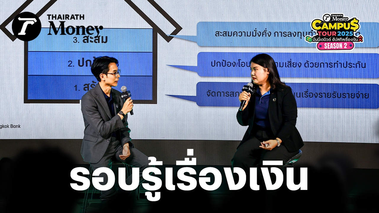 หนึ่งในคำถามที่นักศึกษาหลายคนเริ่มคิดถึงคือ ถ้าวันหนึ่งเราจบการศึกษาจากรั้วมหาวิทยาลัยแล้ว ไม่ว่าจะช่วงหางานไปจนถึงมีเงินเดือนก้อนแรก ควรวางแผนบริหารเงินของตัวเองยังไงดี เพื่อหาคำตอบกับเรื่องนี้ เราได้สรุปข้อมูลที่น่าสนใจจากงาน Thairath Money Campus Tour 2025 SEASON 2 ที่มหาวิทยาลัยมหิดล ในหัวข้อ “Smart Start ชีวิตการเงินดี เริ่มต้นพื้นฐานที่เข้าใจ” โดยวิทยากรที่ปรึกษาการเงินธนาคารกรุงเทพมาให้ทุกคน