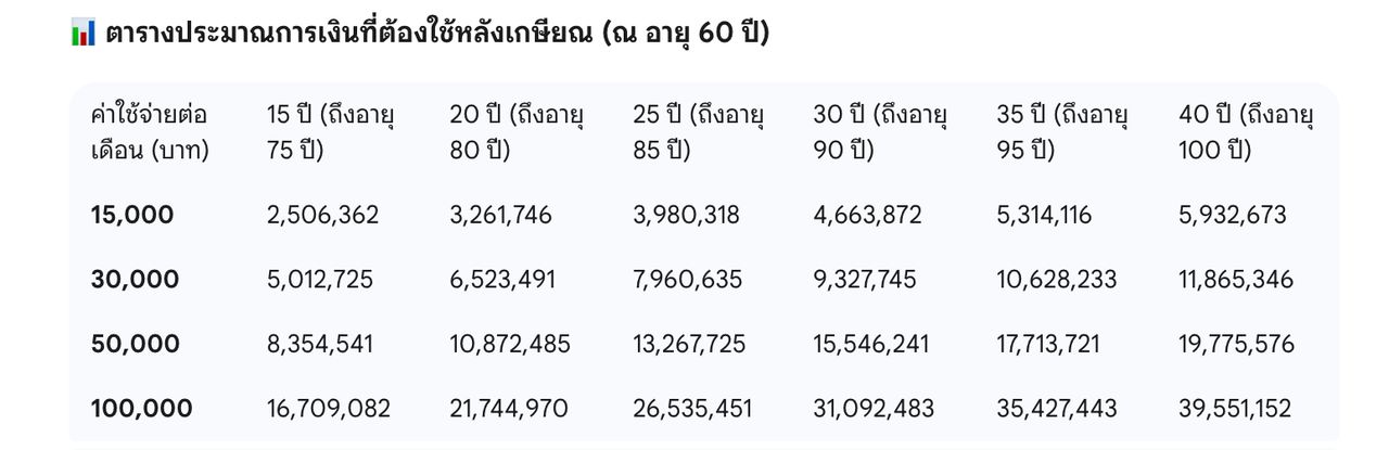 หลังจากมองภาพ “พอร์ตยาว 100 ปี” ในมุมของหุ้นและอสังหาฯ แล้ว อีกหนึ่งคำถามที่ใหญ่ไม่แพ้กันคือ แล้วตัวเลขจริง ๆ ที่เราต้องเตรียม ณ วันที่เกษียณคือเท่าไหร่?