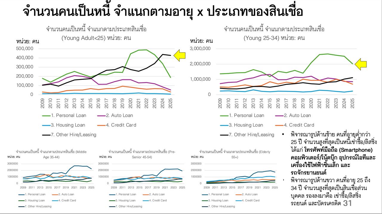 คนไทยโดยเฉลี่ยจะผ่อนรถยนต์หมดในช่วงอายุ 42 ปี แต่กว่าจะผ่อนบ้านหมดต้องรอถึงอายุ 51 ปี นั่นหมายถึงการแบกภาระหนี้สินเชื่อที่มั่นคงไปจนถึงวัยใกล้เกษียณ แต่ที่น่าห่วงกว่าคือ “หนี้ผ่อนของ” ที่ทำให้คนรุ่นใหม่จำนวนมาก "ตายไปจากระบบเครดิตบูโร" เพราะคุมไฟที่เริ่มจากอุปกรณ์ชิ้นเล็กๆ ไม่ได้