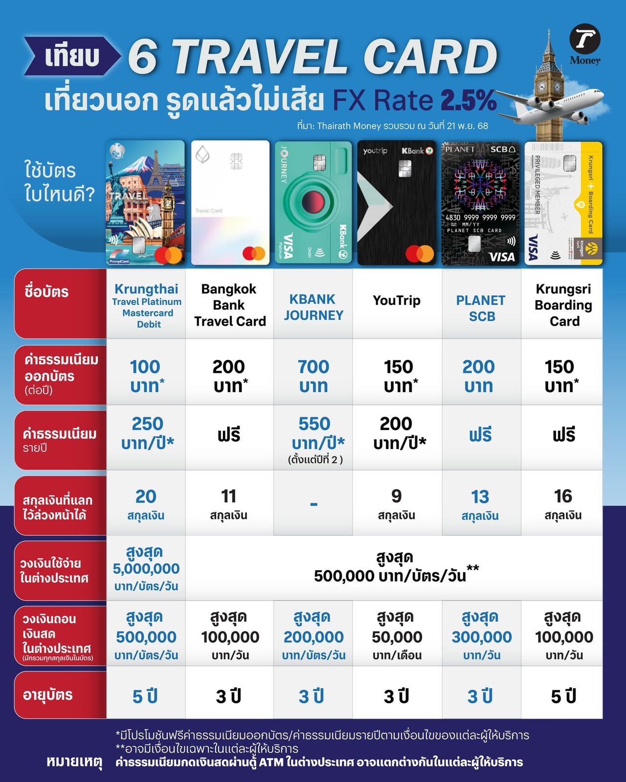 ที่มา : Bangkok Bank Travel Card, Krungthai Travel Platinum Mastercard Debit, KBANK JOURNEY, YouTrip, PLANET SCB, Krungsri Boarding Card