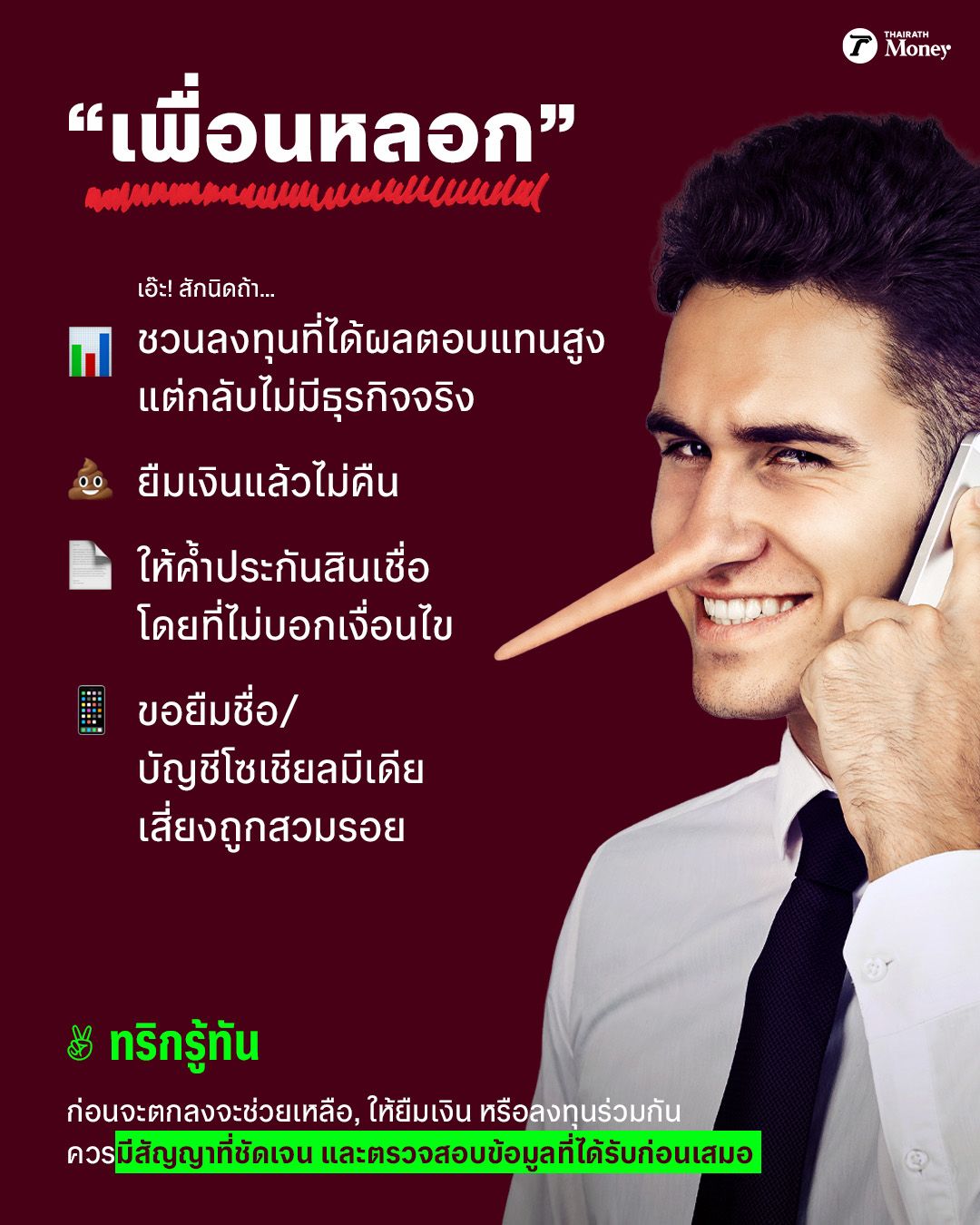 ทริกรู้ทัน: ก่อนจะตกลงจะช่วยเหลือ, ให้ยืมเงิน หรือลงทุนร่วมกัน ควรมีสัญญาที่ชัดเจน และตรวจสอบข้อมูลที่ได้รับก่อนเสมอ