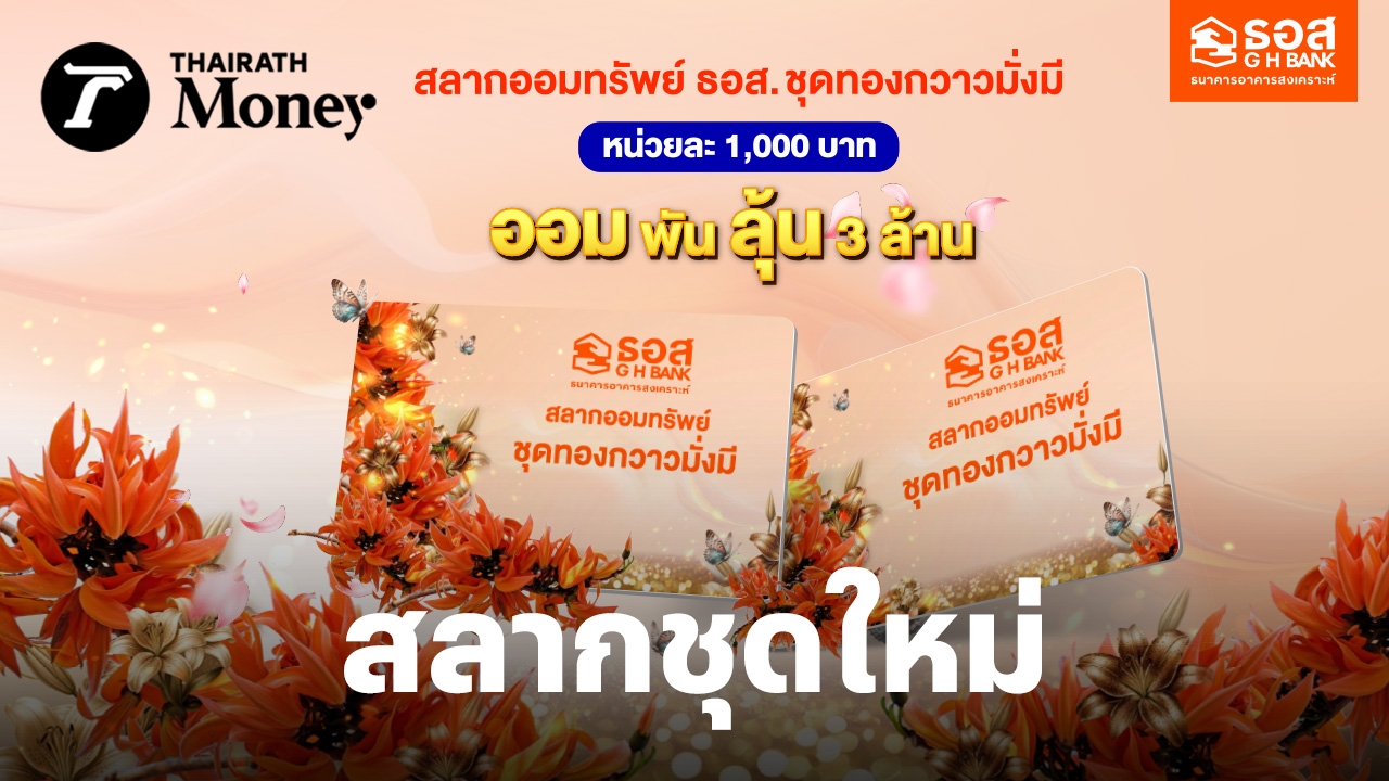 ธนาคารอาคารสงเคราะห์ (ธอส.) เดินหน้าตอกย้ำความเป็นผู้นำด้านการส่งเสริมวินัยการออม เพิ่มทางเลือกในการลงทุนที่ให้ผลตอบแทนสูง ด้วยการเปิดตัวสลากออมทรัพย์ 2 ชุด ประกอบด้วย 1. ชุดทองกวาวมั่งมี หน่วยละ 1,000 บาท อายุสลาก 1 ปี ผลตอบแทนหน้าสลาก 0.50% ต่อปี พร้อมลุ้นรับเงินรางวัลมูลค่า 3 ล้านบาท ตลอด 12 งวด ซื้อ 100,000 บาท ถูกรางวัลเลขท้าย 2 ตัว และ 2. ชุดพราวพิมาน ปี 2568 สลากออมทรัพย์สุดพรีเมียม หน่วยละ 10 ล้านบาท อายุสลาก 1 ปี ผลตอบแทนหน้าสลากสูงถึง 1.30% ต่อปี ลุ้นรับเงินรางวัลมูลค่ากว่าล้านบาท ตลอด 12 งวด มีโอกาสถูกรางวัลใหญ่ 1.30% และโอกาสถูกรางวัลเลขท้ายสูงถึง 10% ซื้อ 10 หน่วย ถูกรางวัลเลขท้าย 1 ตัว มูลค่า 10,000 บาท ทุกงวด พิเศษ! ซื้อสลากชุดพราวพิมาน ปี 2568 จำนวน 1 หน่วย รับฟรีสลากชุดทองกวาวมั่งมี จำนวน 1 หน่วยทันที ผู้ที่สนใจสามารถซื้อสลากได้ตั้งแต่วันที่ 2 ธันวาคม 2568 เป็นต้นไป ผ่าน Application: GHB ALL GEN และสาขาธนาคารทั่วประเทศ