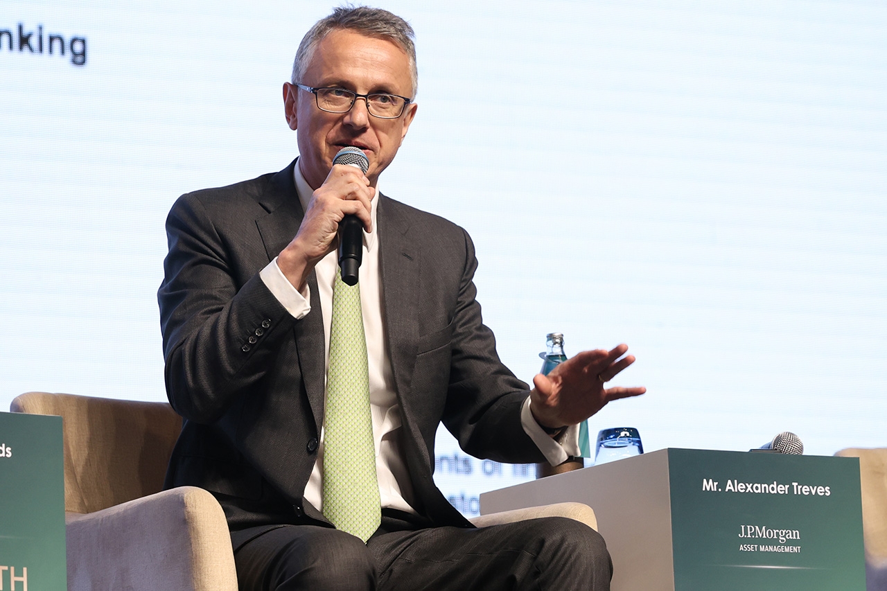 Alexander Treves, Managing Director, Head of Investment Specialist – Asia, J.P. Morgan Asset Management มอง AI ไม่ใช่แค่กระแส แต่คือ Structural Investment Supercycle ที่มีเม็ดเงินลงทุน สูงถึง 3 ล้านล้านดอลลาร์สหรัฐ ในช่วงปี 2024-2029 ซึ่ง AI ไม่ใช่แค่เรื่องของโครงสร้างพื้นฐานอีกต่อไป แต่กำลังเข้าสู่ช่วงการนำมาใช้งานจริง แต่มีปัจจัยที่ต้องจับตาคือ อย่าลงทุนเพียงเพราะชื่อดัง เพราะคนทำกำไรได้มากกว่าอาจเป็นธุรกิจต้นน้ำที่ซ่อนอยู่ เช่น ชิป แนะนำให้โฟกัสที่ Semiconductor, Data Center, Cloud Infrastructure และ Energy & Utilities