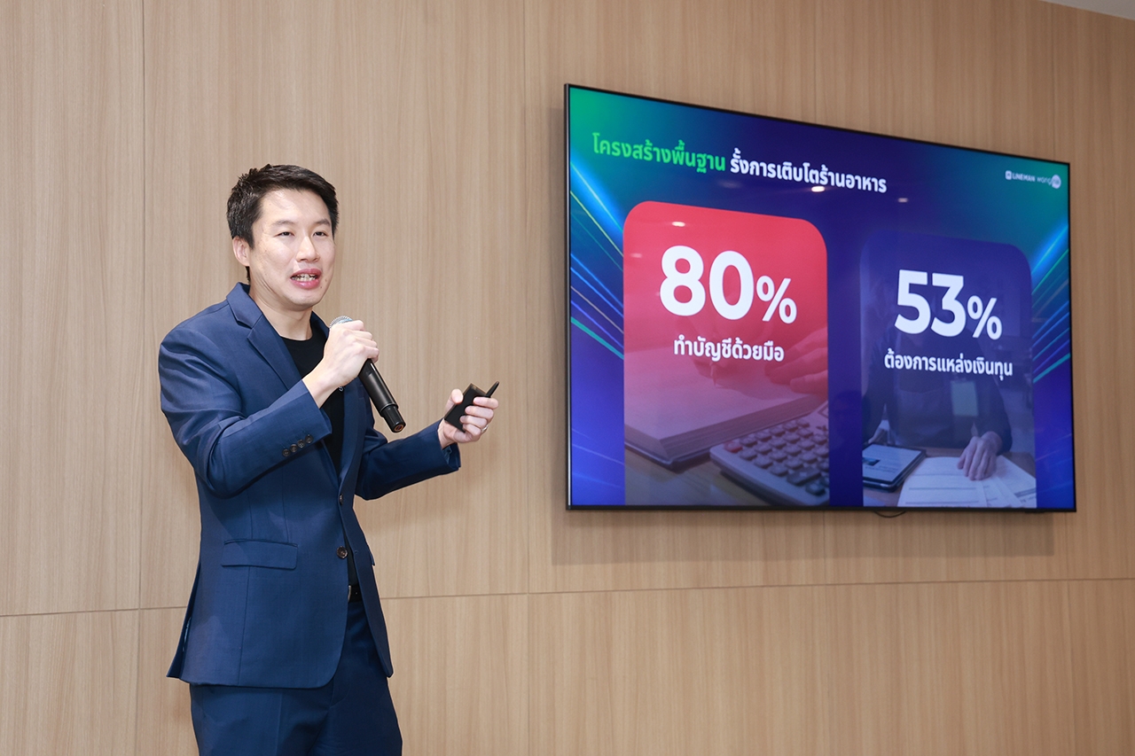 นายเอกลักษณ์ วิริยะโกวิทยา กรรมการผู้จัดการ กลุ่มธุรกิจ Merchant Digital Solutions LINE MAN Wongnai กล่าวว่า จากการสำรวจผู้ประกอบการร้านอาหารบนแพลตฟอร์ม LINE MAN Wongnai พบว่า กว่า 53% ของผู้ประกอบการระบุว่าความต้องการอันดับหนึ่งคือการเข้าถึงแหล่งเงินทุน ขณะที่ 29% ให้ความสนใจระบบบัญชีและการบริหารการเงินของร้าน สะท้อนว่าร้านอาหารจำนวนมากยังขาดโครงสร้างพื้นฐานทางการเงินที่สามารถเชื่อมโยงข้อมูลธุรกิจเข้าด้วยกันได้อย่างเป็นระบบ
