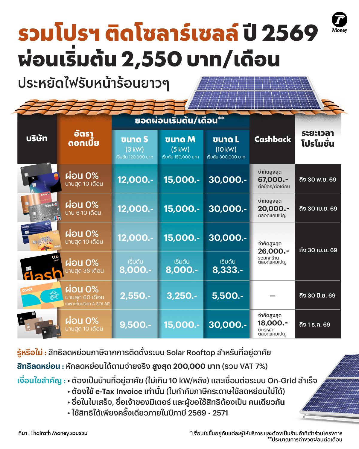 Thairath Money รวมไว้แล้ว! โปรโมชั่นบัตรเครดิต - บัตรกดเงินสด ติดตั้ง Solar Rooftop ให้คุ้มที่สุดและเหมาะกับบ้านของเรา