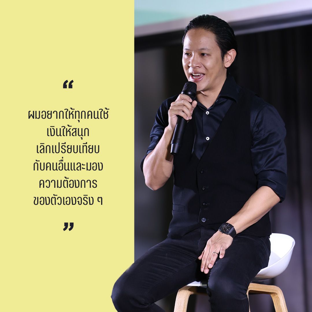สุดท้ายโอมได้ให้คำแนะนำในช่วงจบเวที Talk stage ไว้ว่า “ชีวิตควรเกิดมาใช้เงินด้วยความสนุก” มีความสามารถในการใช้จ่ายให้ชีวิตมีความสุขโดยไม่พึ่งพาใคร และไม่เครียดกับการหาเงินโดยไม่มีที่สิ้นสุด คือ หลักคิดในการสร้างสมดุลชีวิตการเงิน