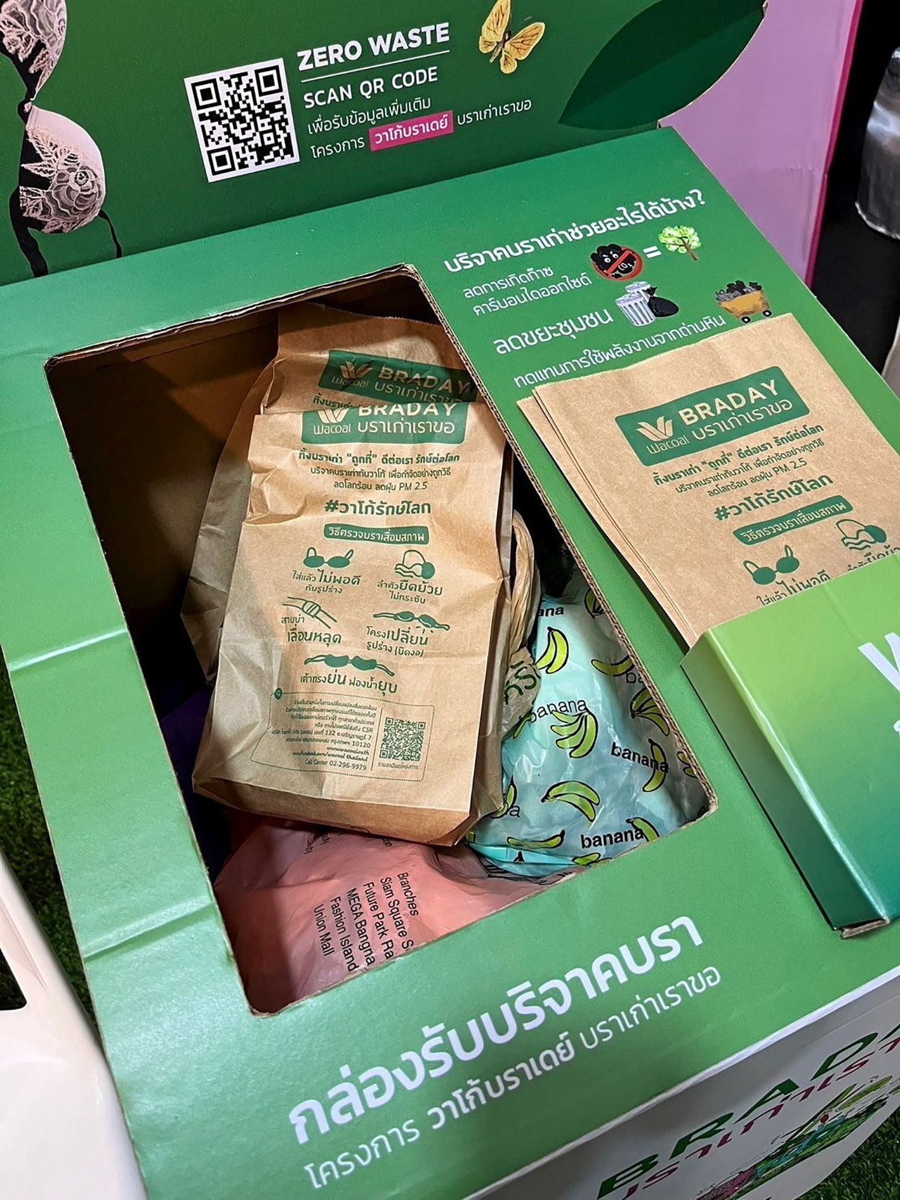 สำหรับบราเก่าที่รับบริจาคมา ได้ส่งไปเข้าเตาเผาระบบปิดที่บริษัท ทีพีไอ โพลีน เพาเวอร์ จำกัด (มหาชน) หรือ TPIPP จังหวัดสระบุรี ด้วยการเผาอย่างถูกวิธีแบบ Zero Waste (เปลี่ยนขยะให้เป็นศูนย์) แปรเปลี่ยนเป็นพลังงานเชื้อเพลิง ทดแทนการใช้ถ่านหินในการผลิตกระแสไฟฟ้า ลดการใช้ทรัพยากรธรรมชาติ หรือพลังงานจากฟอสซิลต่างๆ ลดผลกระทบการเกิดการเปลี่ยนแปลงสภาพภูมิอากาศ (Climate Change) หรือลดโลกร้อน (Global Warming) ทั้งยังลดปริมาณขยะชุมชน และลดปริมาณฝุ่น PM 2.5 ไปในคราวเดียวกันด้วย.