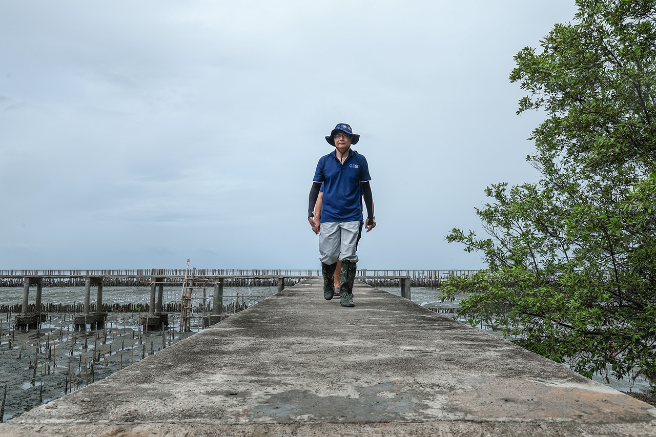“การปักไม้ไผ่ชะลอคลื่น ช่วยลดการกัดเซาะชายฝั่ง และทำให้ตะกอนดินตกลงมาทับถม สะสมเป็นแผ่นดินใหม่ และเป็นแหล่งที่อยู่อาศัยของสัตว์น้ำวัยอ่อน เช่น ปู ปลา และกุ้ง” ไกรศร พรหมหาญ ผู้อำนวยการส่วนอนุรักษ์ทรัพยากรป่าชายเลน กล่าว