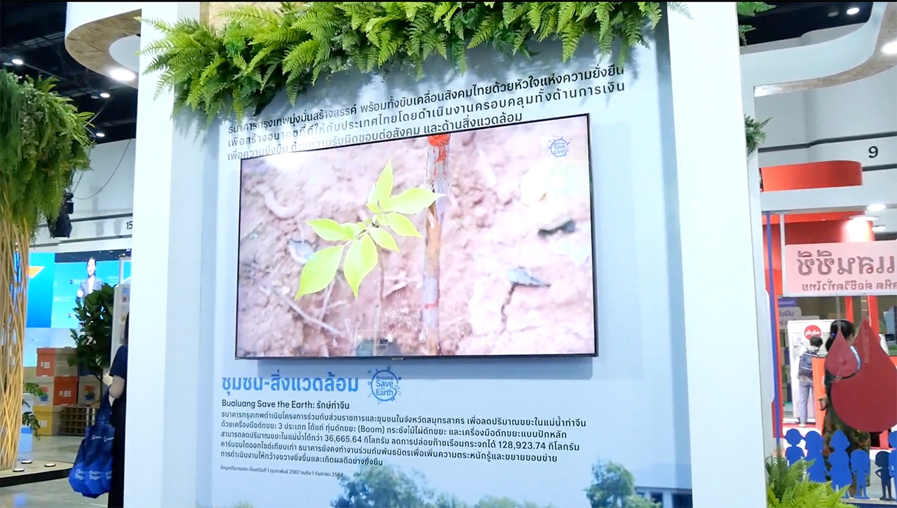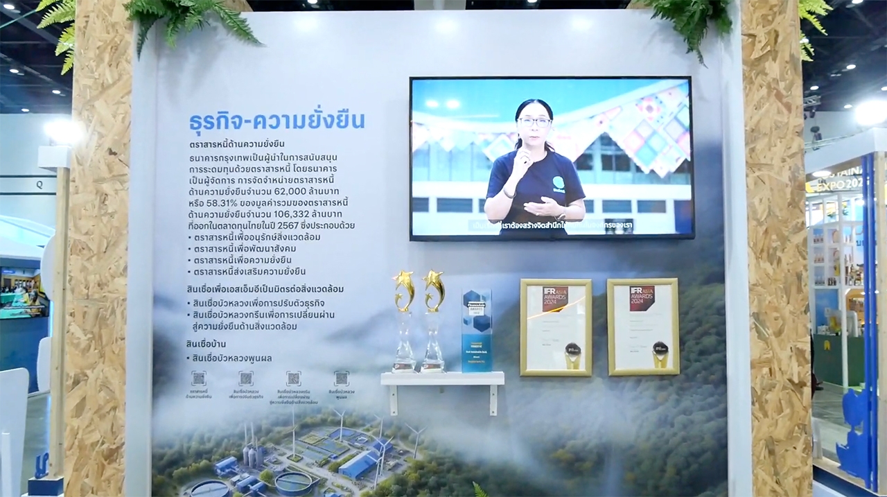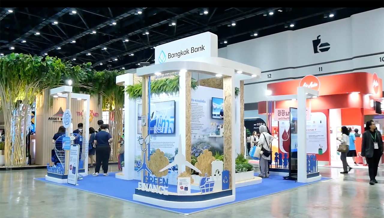 นอกจากนี้ภายในบูธ ธนาคารได้ฉายภาพความสำเร็จของลูกค้าส่วนหนึ่ง ที่ได้รับการสนับสนุนสินเชื่อเพื่อปรับเปลี่ยนสู่ธุรกิจสีเขียว ได้แก่ บริษัท คอรัล ไลฟ์ จำกัด ผู้นำนวัตกรรมอาคารประหยัดพลังงานครบวงจร บริษัท ฮิลล์คอฟฟ์ จำกัด ธุรกิจขายกาแฟ ที่สร้างผลกระทบเชิงบวกทั้งด้านเศรษฐกิจ สังคม และสิ่งแวดล้อม บริษัท โรงเลื่อยจักรท่าเสา จำกัด ธุรกิจแปรรูปไม้สักครบวงจร ที่ดำเนินธุรกิจภายใต้แนวคิด “Green Product สู่ความยั่งยืน” บริษัท บูรพา พรอสเพอร์ จำกัด ผู้ผลิตและจำหน่ายแป้งจากข้าวสำเร็จรูป ดำเนินธุรกิจโดยเน้นความยั่งยืนและเป็นมิตรต่อสิ่งแวดล้อม บริษัท น้ำมันพืชปทุม จำกัด ธุรกิจผลิตจำหน่ายน้ำมันพืช ที่ให้ความสำคัญต่อการเสริมสร้างความยั่งยืนตลอดห่วงโซ่คุณค่าของอุตสาหกรรม และ บริษัท ลำปางฟู้ดโปรดักส์ จำกัด ผู้ผลิตและส่งออกผลิตภัณฑ์อาหารและสินค้าแปรรูป ที่มุ่งมั่นพัฒนาอุตสาหกรรมการเกษตรเพื่อชีวิตที่มั่นคงของเกษตรกร พนักงาน คู่ค้าและผู้ลงทุน