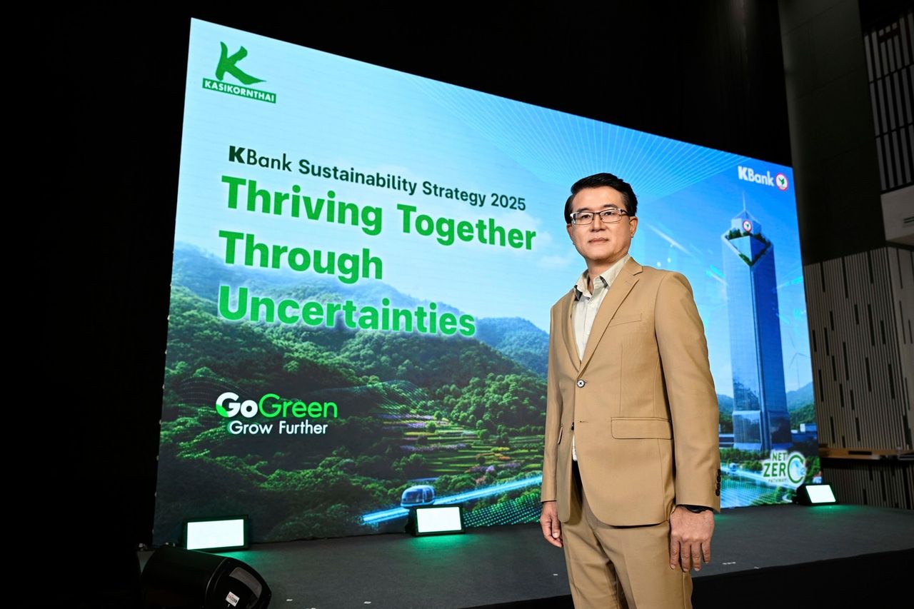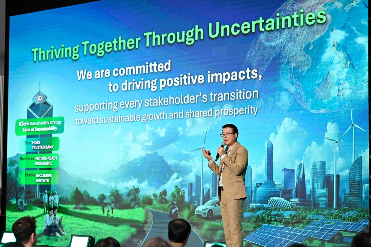 ในงานแถลงข่าว “ยุทธศาสตร์ความยั่งยืน ธนาคารกสิกรไทย 2568 : ฝ่าคลื่นความเปลี่ยนแปลง สู่การเติบโต ที่ยั่งยืนไปด้วยกัน” โดยได้ประกาศปรับยุทธศาสตร์ความยั่งยืน จากแกน ESG สู่การจัดการประเด็นสำคัญแบบองค์รวมเชื่อมโยงทุกมิติที่เกี่ยวข้อง