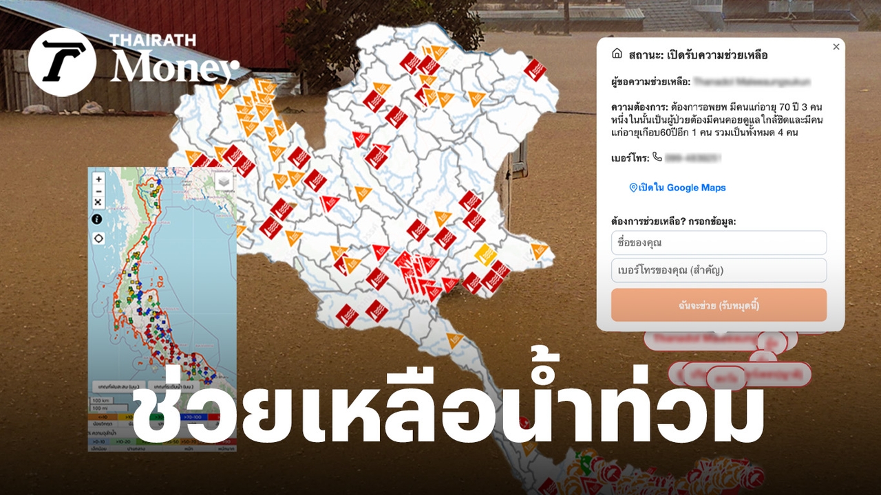 สถานการณ์ยังคงบานปลายมากขึ้น เมื่อผู้ประสบภัยหลายกลุ่มยังไม่ได้รับความช่วยเหลือ และยังคงติดอยู่ในพื้นที่น้ำท่วม Thairath Money ได้รวบรวมช่องทางเพื่อให้ช่วยกันแจ้งพิกัดแทนผู้ประสบภัย ขอความช่วยเหลือ และเพื่อติดตามระดับน้ำ หรือแม้กระทั่งเพื่อลงทะเบียนช่วยเป็นจิตอาสา