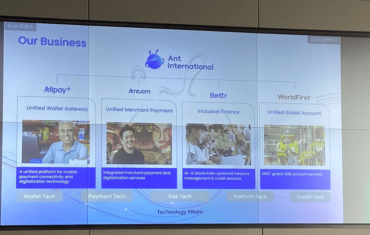 ด้าน สิทธิพงษ์ กิตติประภาพงศ์ ผู้จัดการทั่วไป ด้าน Global Merchant Partnership ประจำประเทศไทย บริษัท แอนท์กรุ๊ป จำกัด กล่าวว่า ปัจจุบัน Ant Group ให้บริการประชากรโลกกว่า 1.8 ล้านราย ผ่าน 40 Wallet ครอบคลุม 4 ธุรกิจหลัก ได้แก่