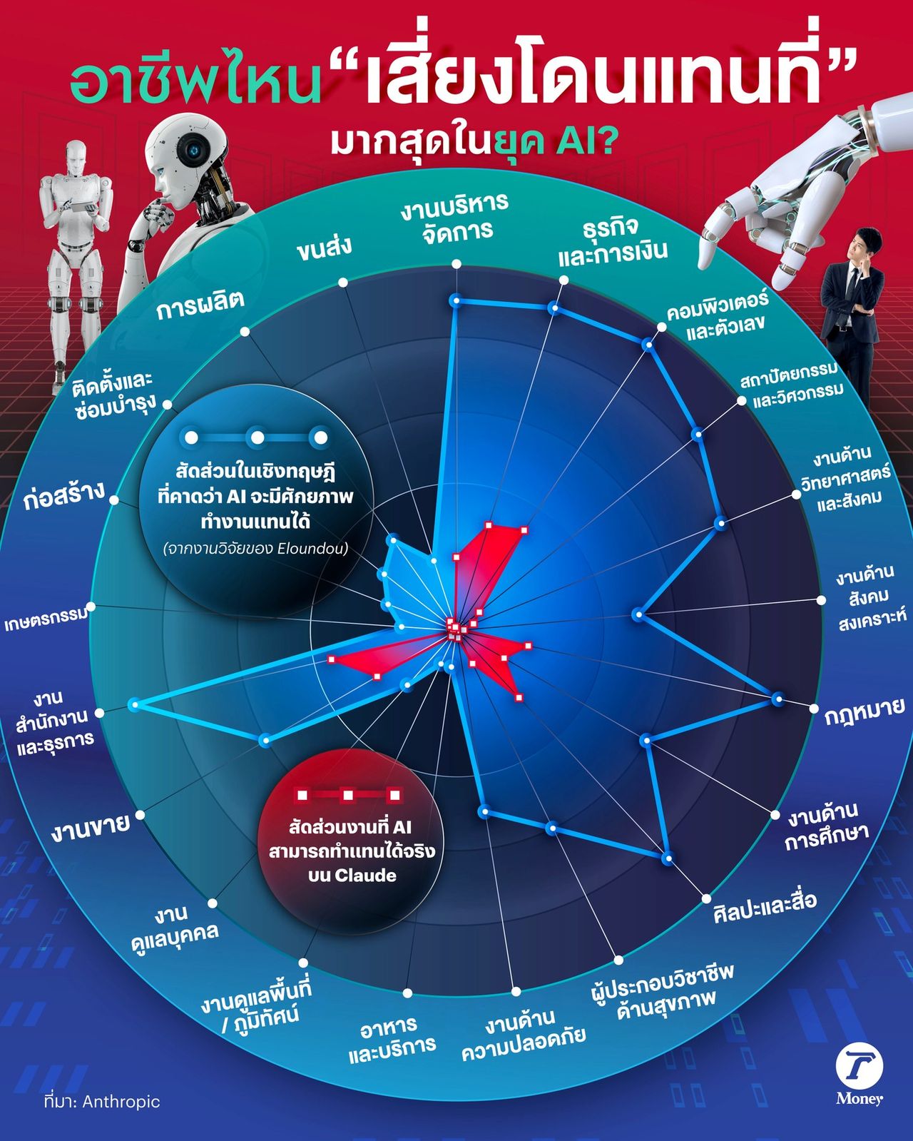 Anthropic เผยรายงานฉบับใหม่ ประเมินความเสี่ยงอาชีพใดที่จะถูกแทนที่ด้วยปัญญาประดิษฐ์ (AI) โดยใช้เครื่องมือที่เรียกว่า Observed Exposure เป็นการเทียบข้อมูล 2 ชุดเข้าด้วยกัน คือ เชิงทฤษฎีกับการใช้งานจริง