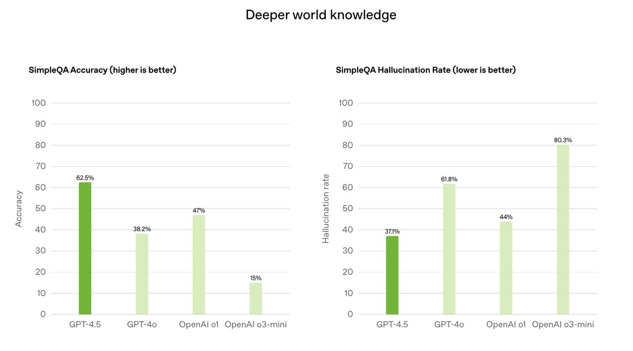 ในบล็อกโพสต์ของ OpenAI ที่เผยแพร่ในวันพฤหัสบดีที่ 27 กุมภาพันธ์ที่ผ่านมา ระบุว่า GPT-4.5 สามารถรับรู้อารมณ์และโทนการสื่อสารของผู้ใช้ได้ดีขึ้น โดยสามารถตอบสนองต่อคำถามหรือบทสนทนาที่มีรายละเอียดและนัยยะแอบแฝงได้อย่างแยบยล ทั้งยังโดดเด่นเป็นพิเศษในงานแชท งานเขียน และการเขียนโค้ด อีกทั้ง OpenAI ยังคาดหวังว่า GPT-4.5 จะสร้าง “ข้อมูลที่ไม่เป็นความจริง” หรือที่เรียกว่า Hallucination น้อยลง เมื่อเทียบกับโมเดลรุ่นก่อน