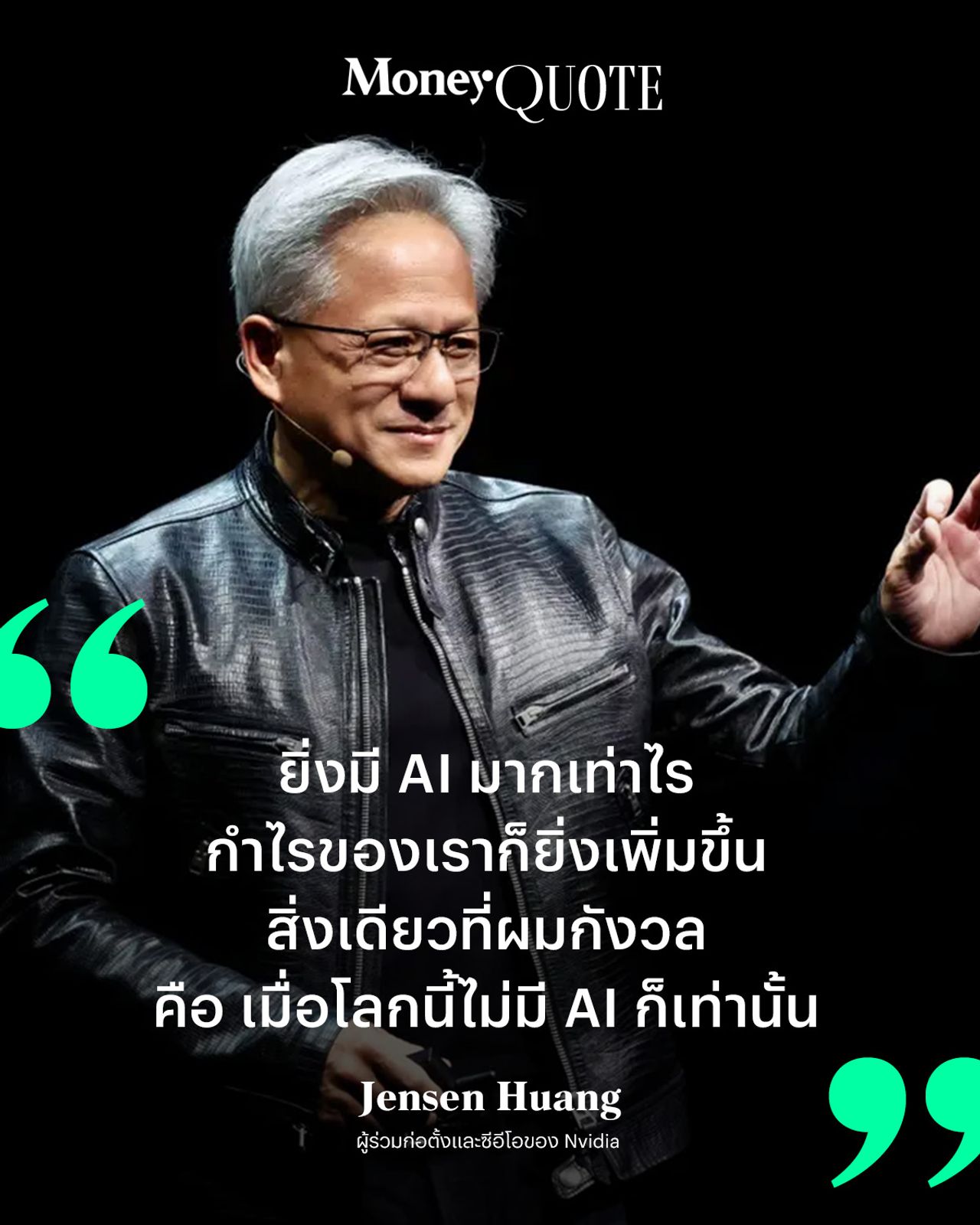 ด้าน Jensen Huang ผู้ร่วมก่อตั้งและซีอีโอของ Nvidia ก็ได้แสดงความมั่นใจต่ออนาคตธุรกิจ โดยคาดว่า AI และหุ่นยนต์จะสร้างรายได้ระดับหลายล้านล้านดอลลาร์สหรัฐให้กับบริษัทในอีกไม่กี่ปีข้างหน้า จากการอัปเกรดชิปและโครงสร้างพื้นฐานในดาต้าเซ็นเตอร์ที่ยังทิ้งห่างคู่แข่ง โดย Nvidia คาดว่าจะมีรายได้เกือบ 2 แสนล้านดอลลาร์สหรัฐในปีนี้ เพิ่มขึ้น 55% จากปีก่อน และมีกำไรสุทธิที่นักวิเคราะห์ประเมินว่าจะอยู่ราว 1.05 แสนล้านดอลลาร์สหรัฐ พร้อมอัตรากำไรขั้นต้นที่สูงกว่า 70% “ยิ่งมี AI มากเท่าไร กำไรของเราก็ยิ่งเพิ่มขึ้น สิ่งเดียวที่ผมกังวล คือ เมื่อโลกนี้ไม่มี AI ก็เท่านั้น” เขากล่าว